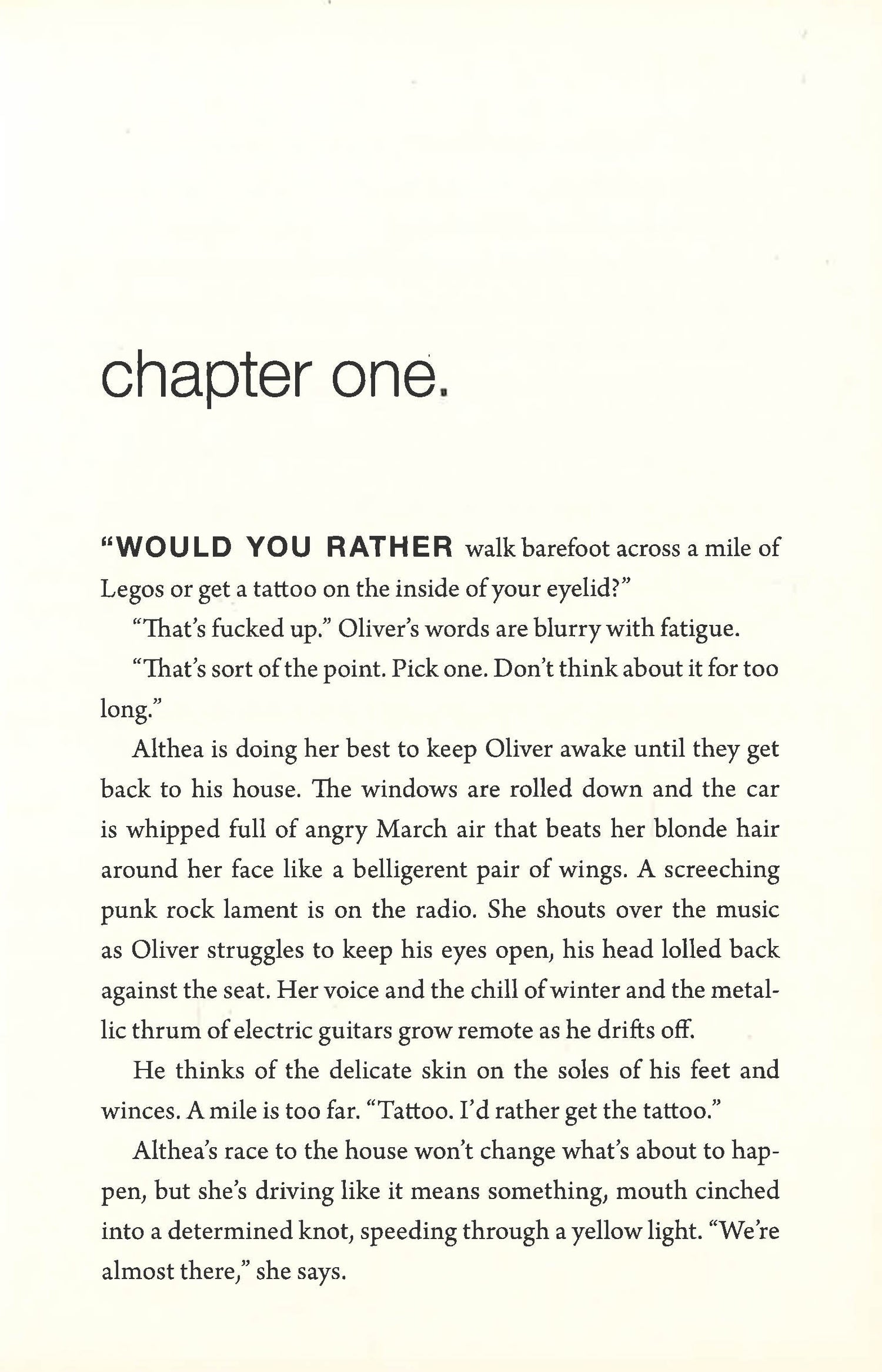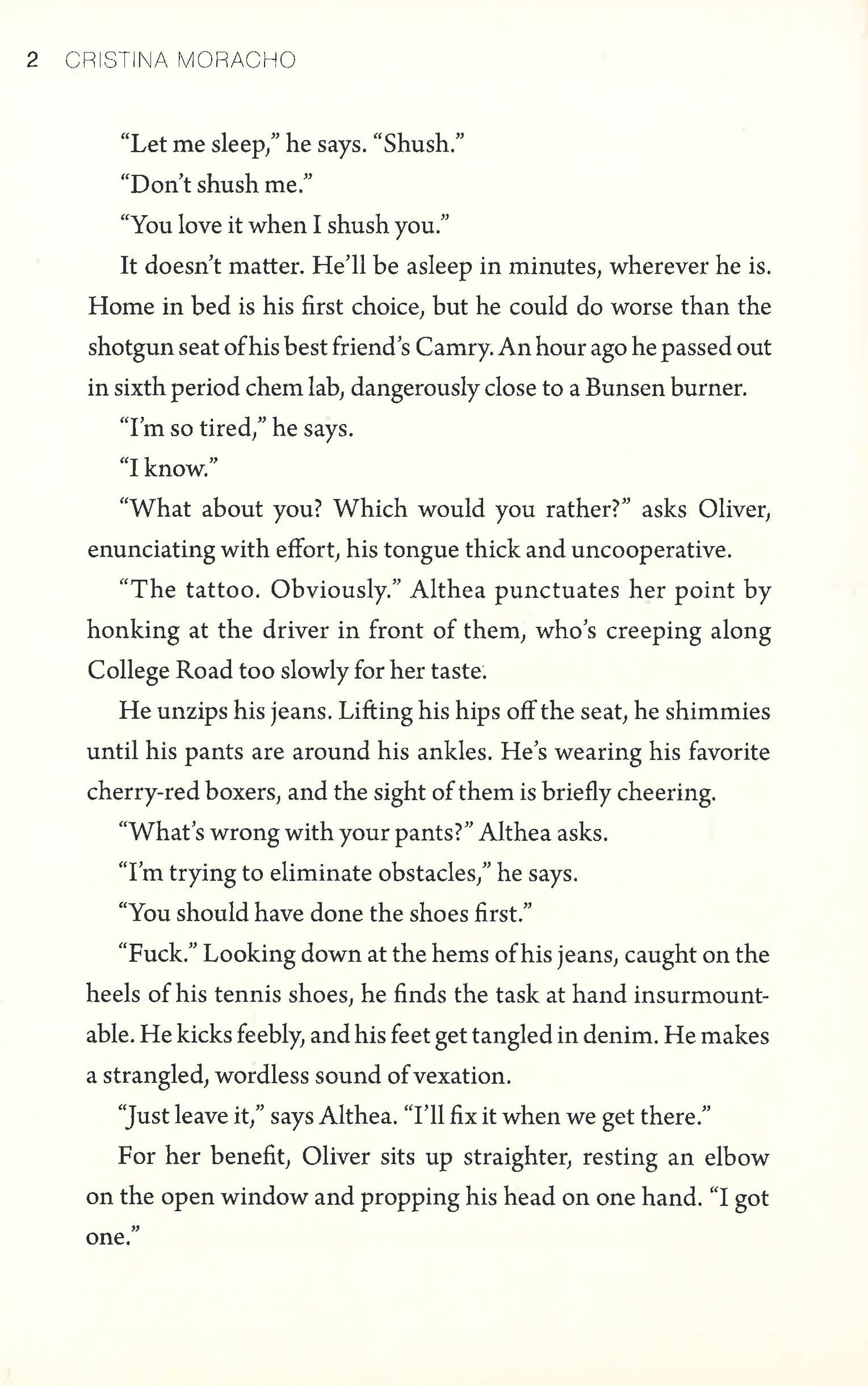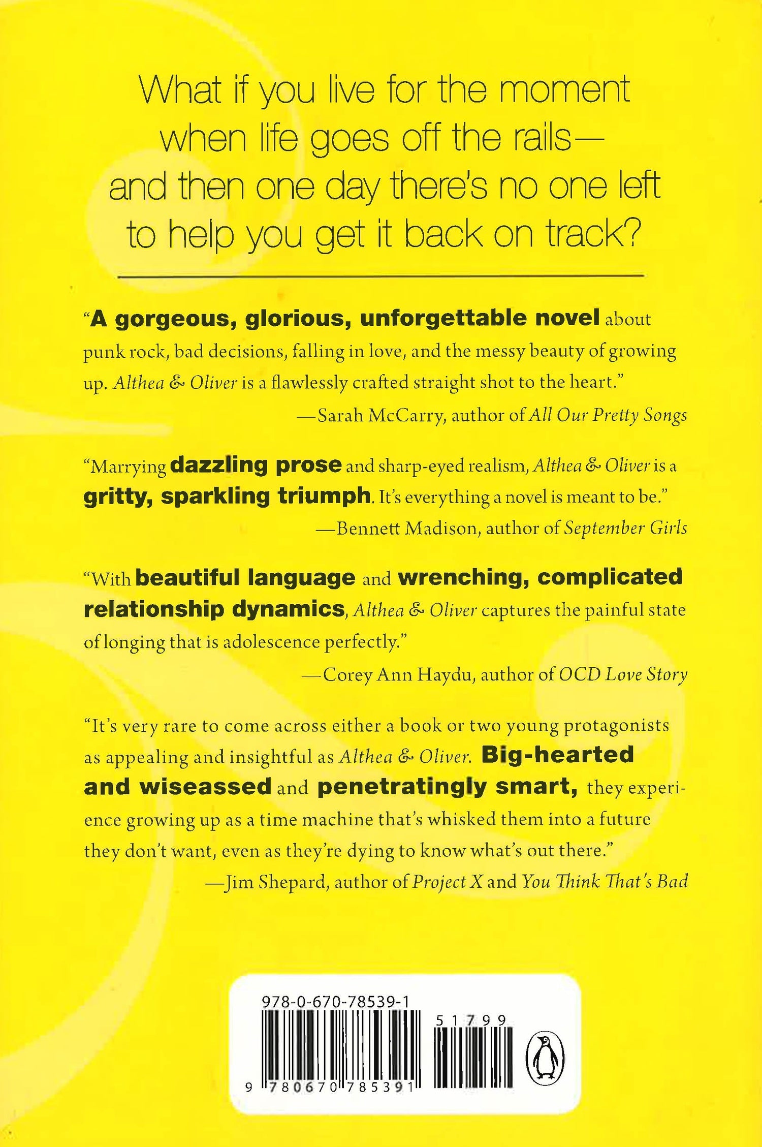What if you live for the moment when life goes off the rails?and then one day there?s no one left to help you get it back on track? Althea Carter and Oliver McKinley have been best friends since they were six; she?s the fist-fighting instigator to his peacemaker, the artist whose vision balances his scientific bent. Now, as their junior year of high school comes to a close, Althea has begun to want something more than just best-friendship. Oliver, for his part, simply wants life to go back to normal, but when he wakes up one morning with no memory of the past three weeks, he can?t deny any longer that something is seriously wrong with him. And then Althea makes the worst bad decision ever, and her relationship with Oliver is shattered. He leaves town for a clinical study in New York, resolving to repair whatever is broken in his brain, while she gets into her battered Camry and drives up the coast after him, determined to make up for what she?s done. Their journey will take them from the rooftops, keg parties, and all-ages shows of their North Carolina hometown to the pool halls, punk houses, and hospitals of New York City before they once more stand together and face their chances. Set in the DIY, mix tape, and zine culture of the mid-1990s, Cristina Moracho?s whip-smart debut is an achingly real story about identity, illness, and love?and why bad decisions sometimes feel so good. *This book may have remainder mark*