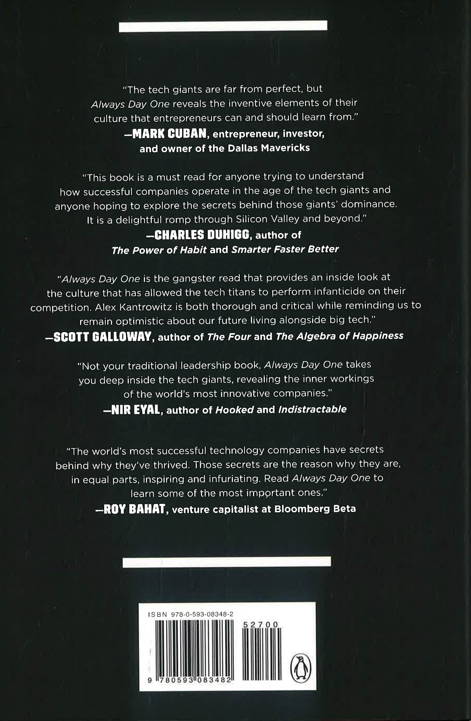 Through 130 interviews with insiders, from Mark Zuckerberg to hourly workers, Always Day One reveals the tech giants' blueprint for sustainable success in a business world where no advantage is safe. Companies today can spin up new products at record speed -- thanks to artificial intelligence and cloud computing -- and those who stand still will be picked apart. The tech giants remain dominant because they've built cultures that spark continual reinvention.