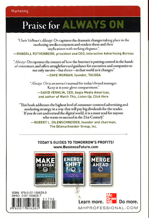 The thought leaders at Booz & Company and strategy+business magazine have collaborated to create an up-to-the-minute exploration of this turbulent yet promising new digital era and its implications for corporate executives and marketing and advertising professionals. Giving you profiles of the best in the business and deep explorations of the most effective innovations and strategies in the marketing world, Always On introduces you to the companies that are reshaping the ways we will reach customers in the future.