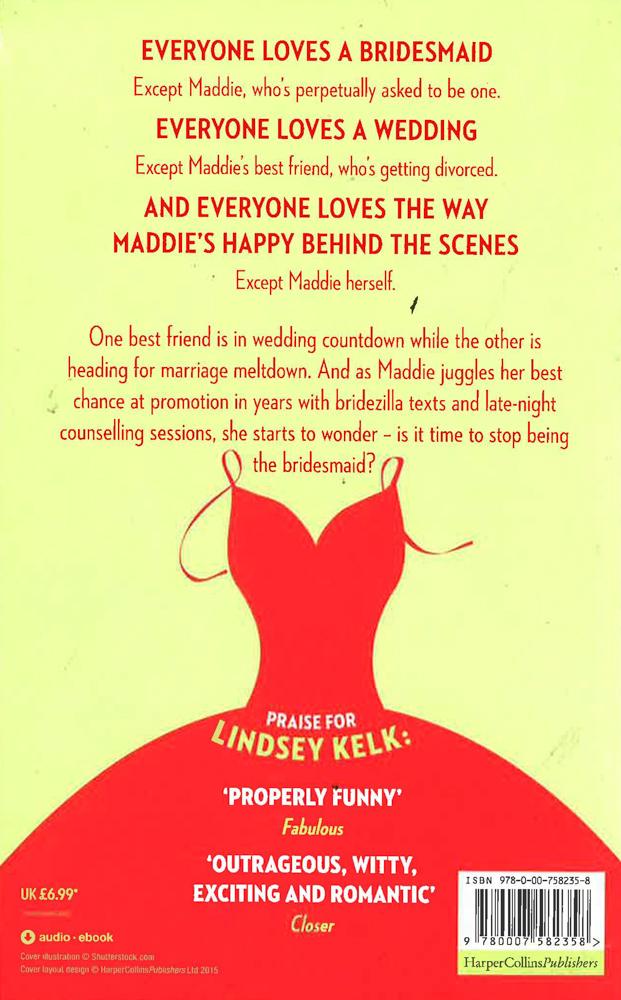 The brilliant new summer bestseller from Lindsey Kelk, author of the I Heart series Everyone loves a bridesmaid. Except Maddie, who's perpetually asked to be one. Everyone loves a wedding. Except Maddie's best friend, who's getting divorced. And everyone loves the way Maddie's so happy backstage. Except Maddie herself. One best friend is in wedding countdown while the other heads for marriage meltdown. And as Maddie juggles her best chance at promotion in years with bridezilla texts and late-night counselling sessions, she starts to wonder - is it time to stop being the bridesmaid?