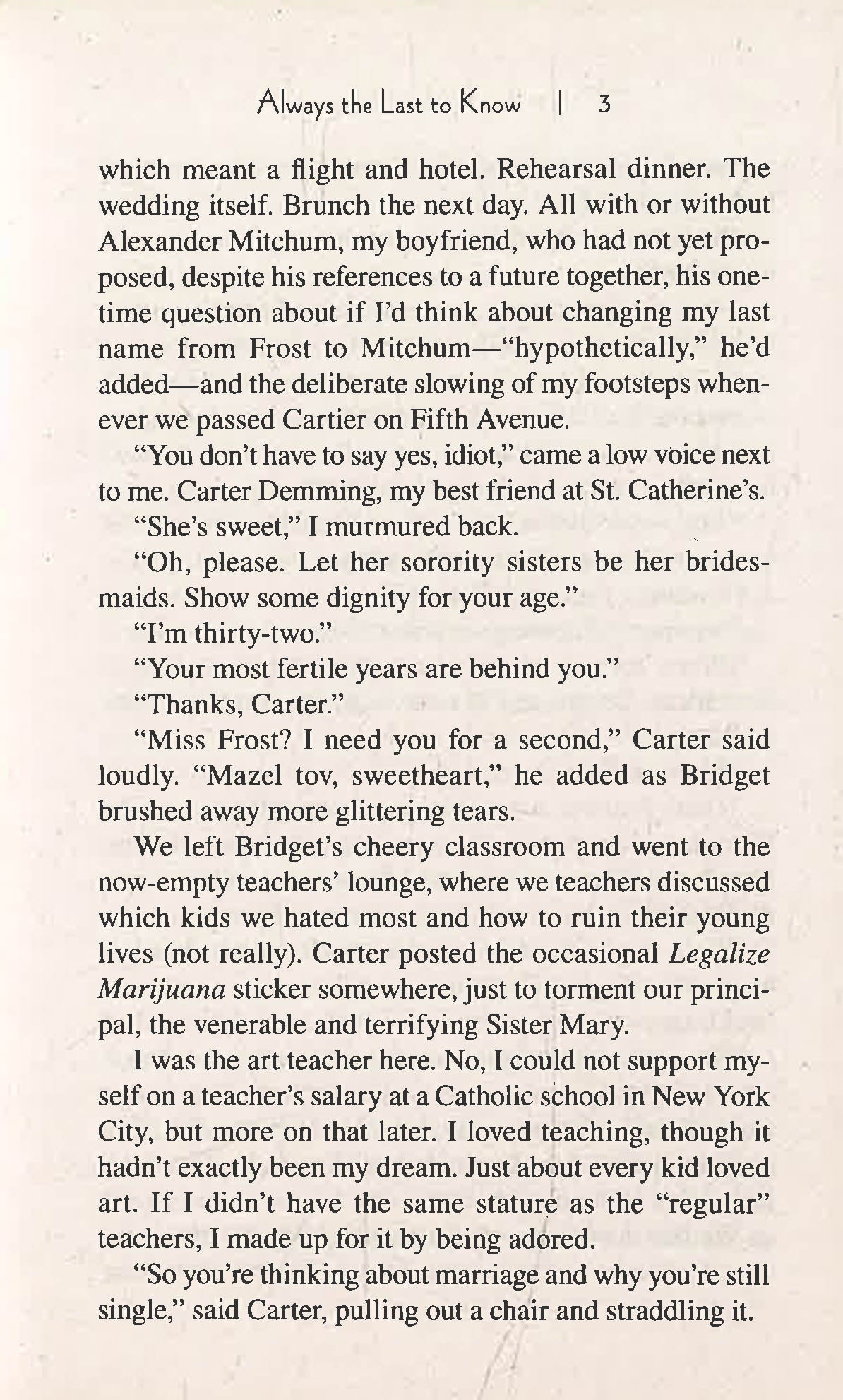 The Frosts are a typical American family. Barb and John, married almost fifty years, are testy and bored with each other...who could blame them after all this time? At least they have their daughters-- Barb's favorite, the perfect, brilliant Juliet; and John's darling, the free-spirited Sadie. The girls themselves couldn't be more different, but at least they got along, more or less. It was fine. It was enough.