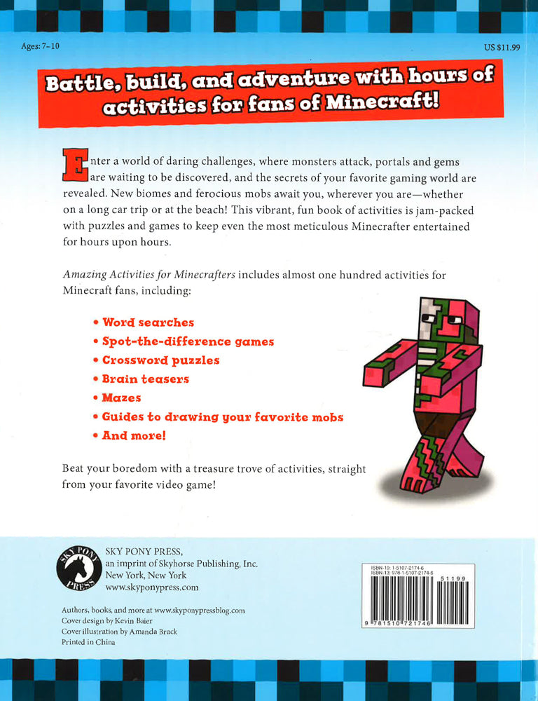 Almost 100 activities inspired by Minecraft that boys and girls will love: word search, spot the difference, crossword puzzles, mazes, and more!