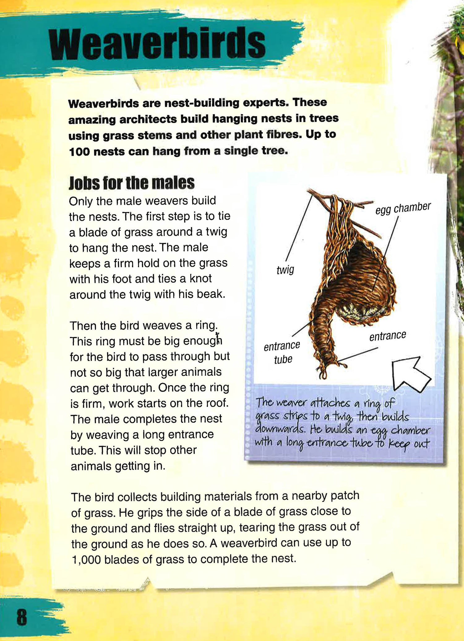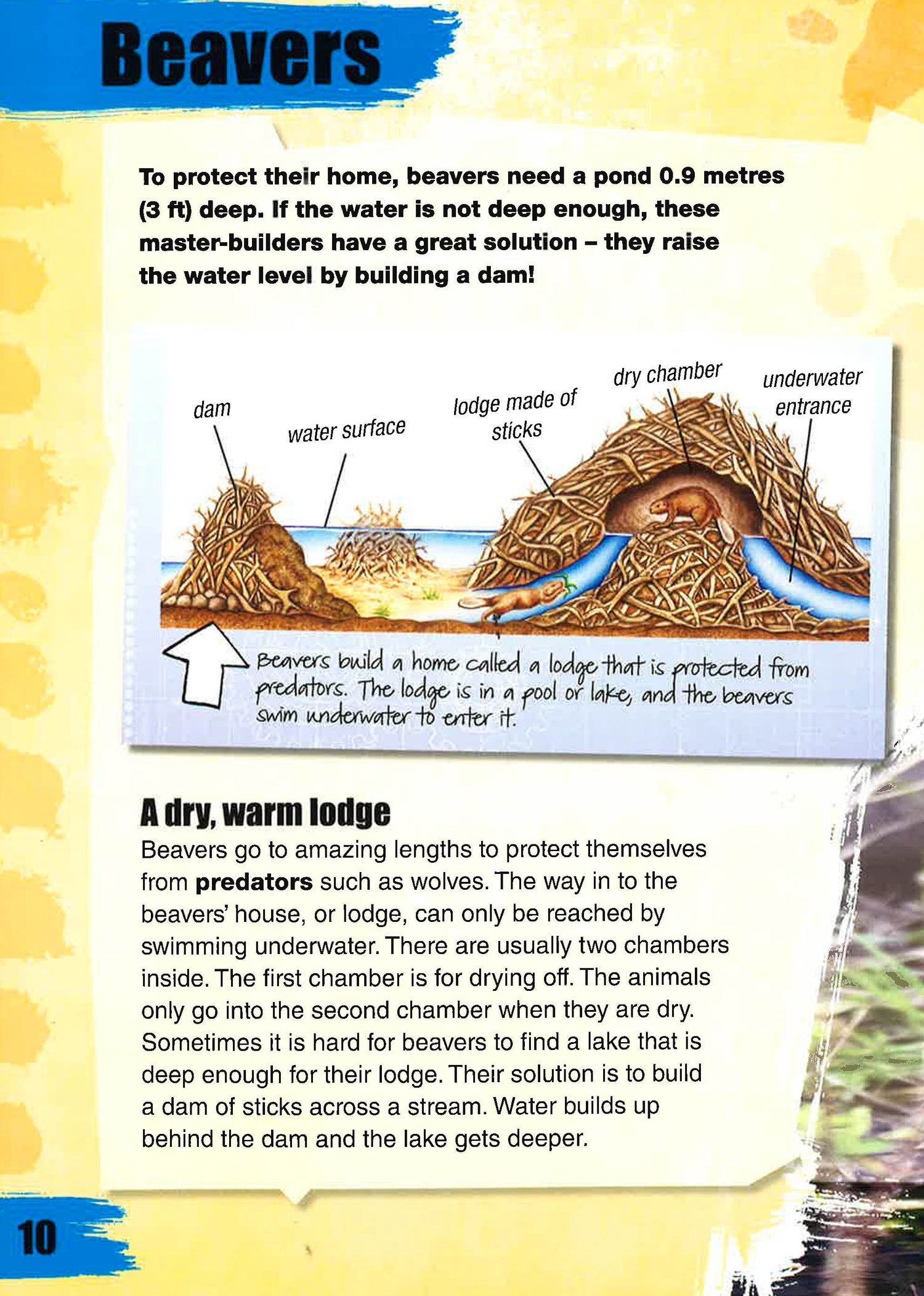 Animals build an incredible array of structures in which to sleep, raise young, or catch prey. Some structures involve excavating in subsoil or wood, others involve construction underwater, and some are fixed to trees. Polar bears dig out caves in the snow to protect themselves from the coldest weather. Spiders spin webs of incredibly strong silk to ensnare prey. Prairie dogs dig underground 'towns' that can house hundreds of families.
