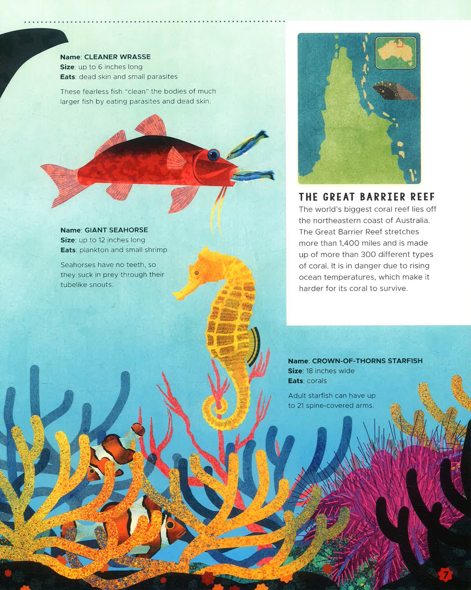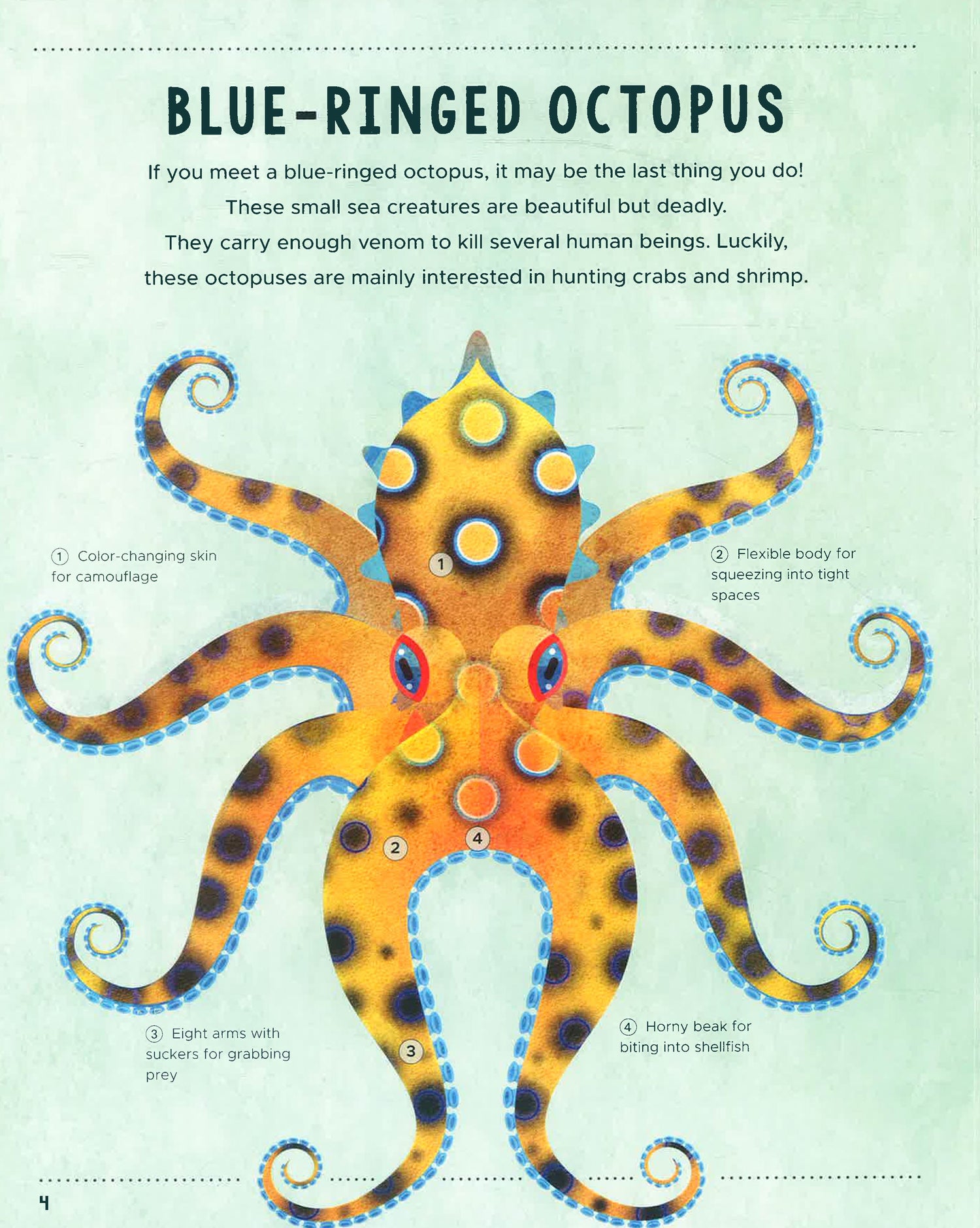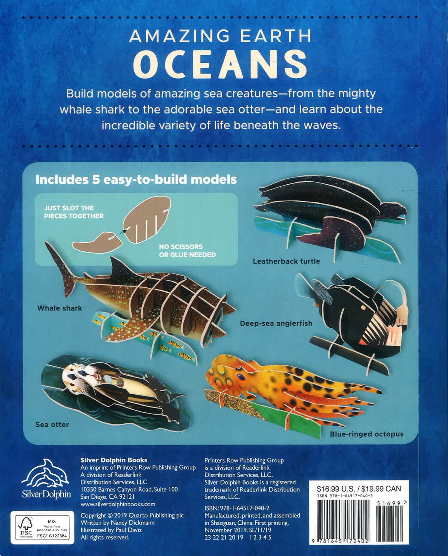 The farther down you go, the colder and darker it gets! In this fun, interactive book, kids will learn about the different layers of the ocean and the many mammals and fish that live in it. They'll read fascinating facts about the mighty whale shark, how the blue-ringed octopus camouflages itself, how sea otters use tools, how anglerfish survive without sunlight, and much more! Then they can follow the simple instructions to assemble five sturdy keepsake models of some of the unique creatures that roam underwater forests or the Great Barrier Reef: a cute sea otter, a leatherback turtle, a whale shark, a deep-sea anglerfish, and a unique blue-ringed octopus. Learning has never been so much fun!