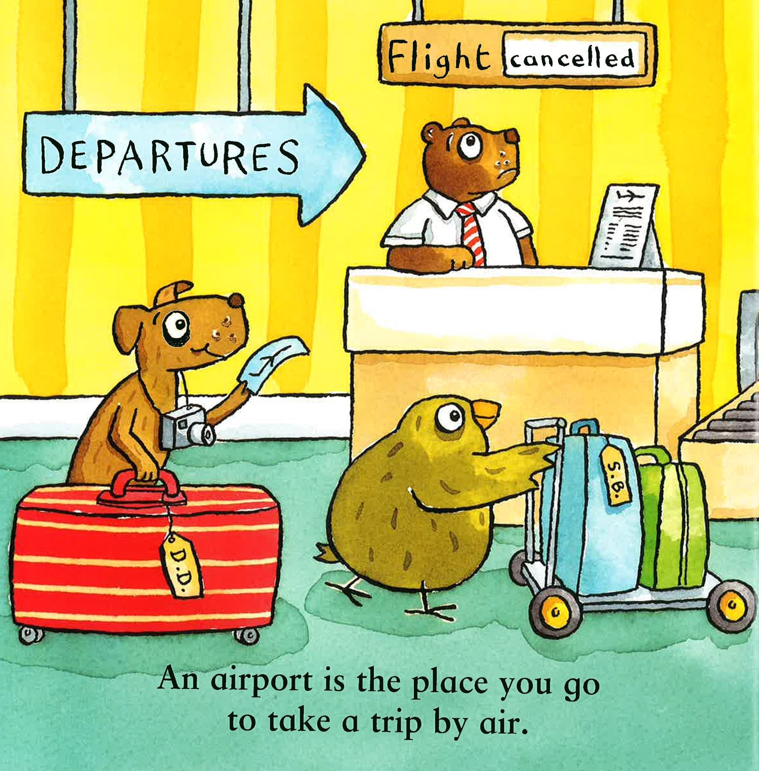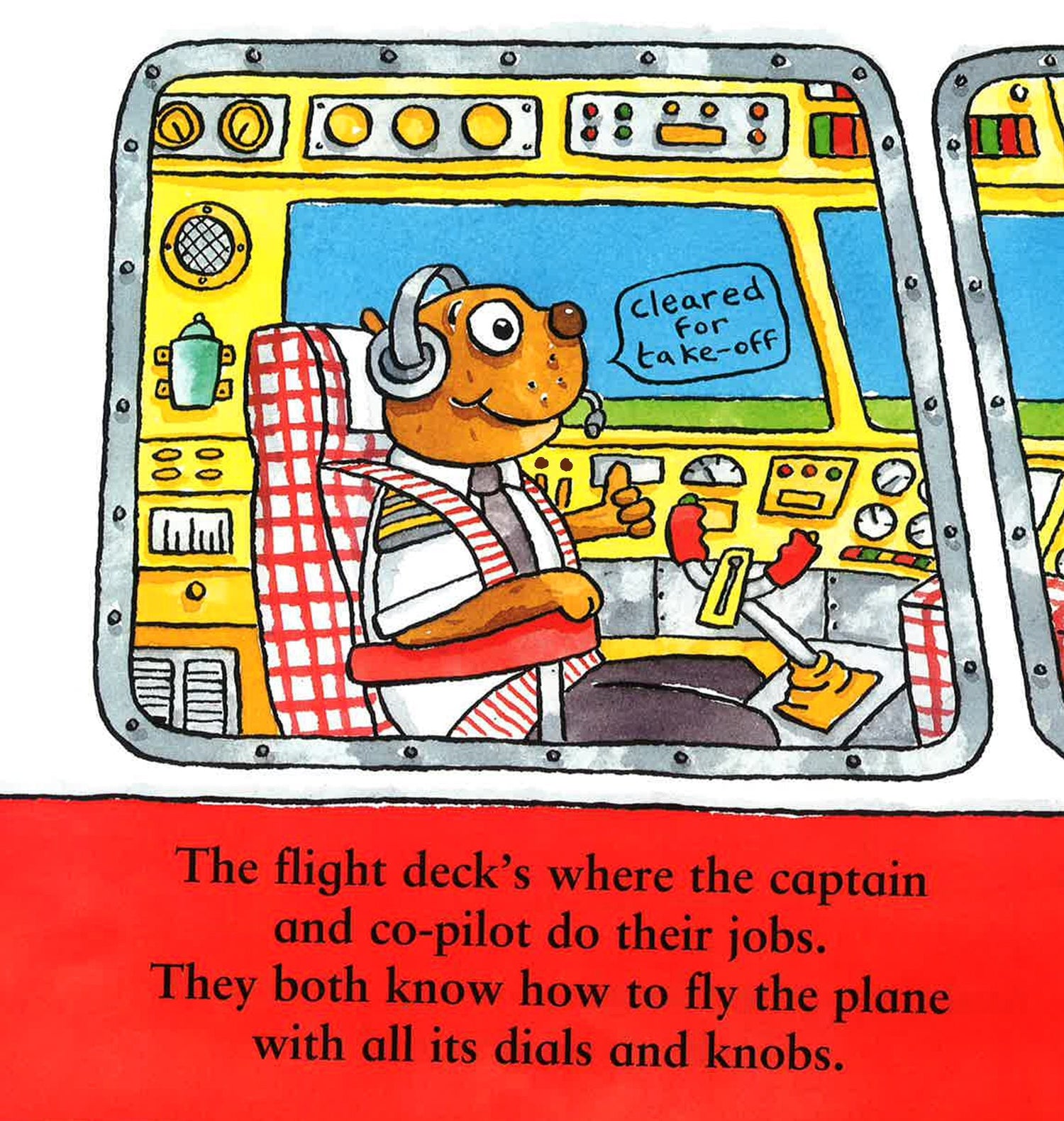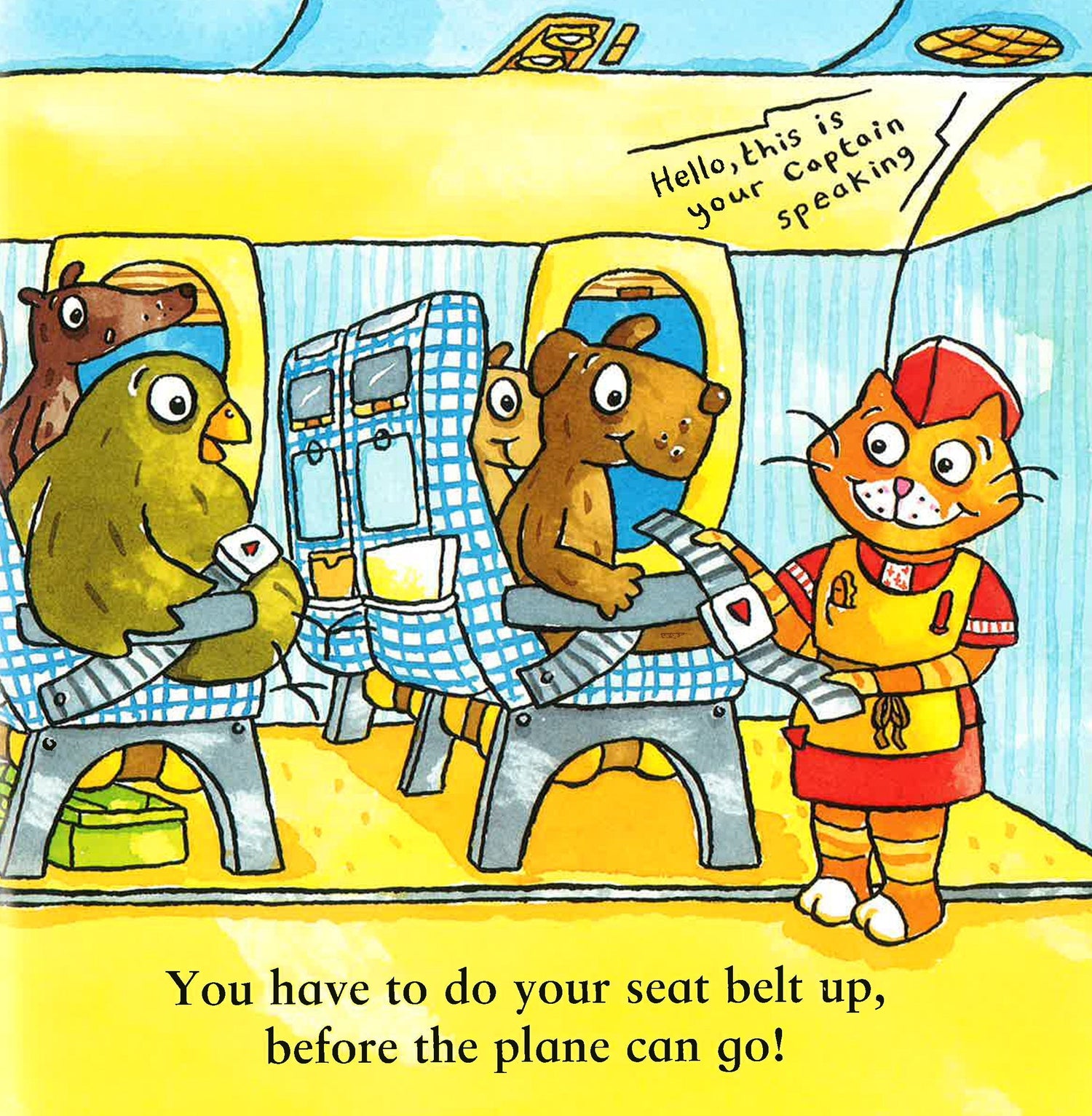 Jet above the clouds with a loopy animal crew in this exhilarating picture book. Zippy wordplay, zappy art, plus a picture dictionary make learning about aeroplanes fun!