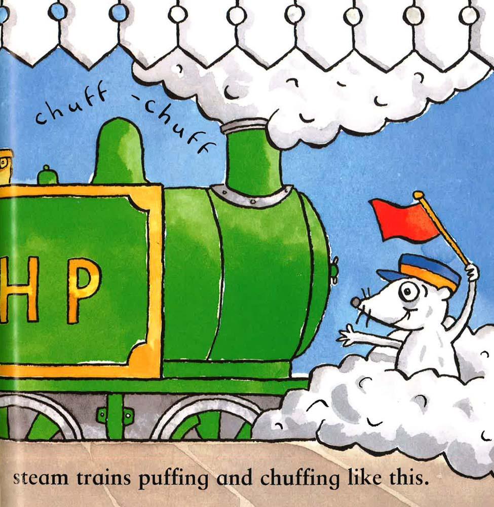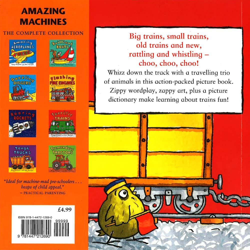 Big Trains, small trains, old trains, and new, rattling and whistling -- Choo, choo, choo! Preschoolers will chuckle as a wacky animal crew toots the whistle and treats them to the delights only a train journey can offer. Clickety-clack, whizz down the track, slow to a railroad crossing.