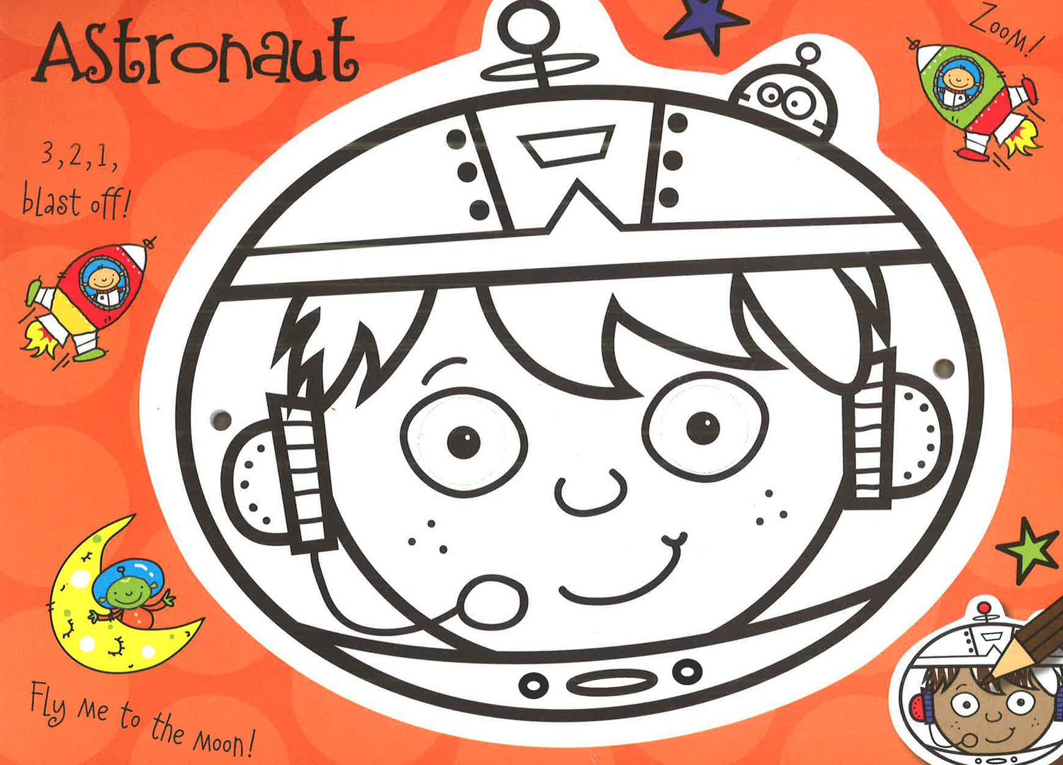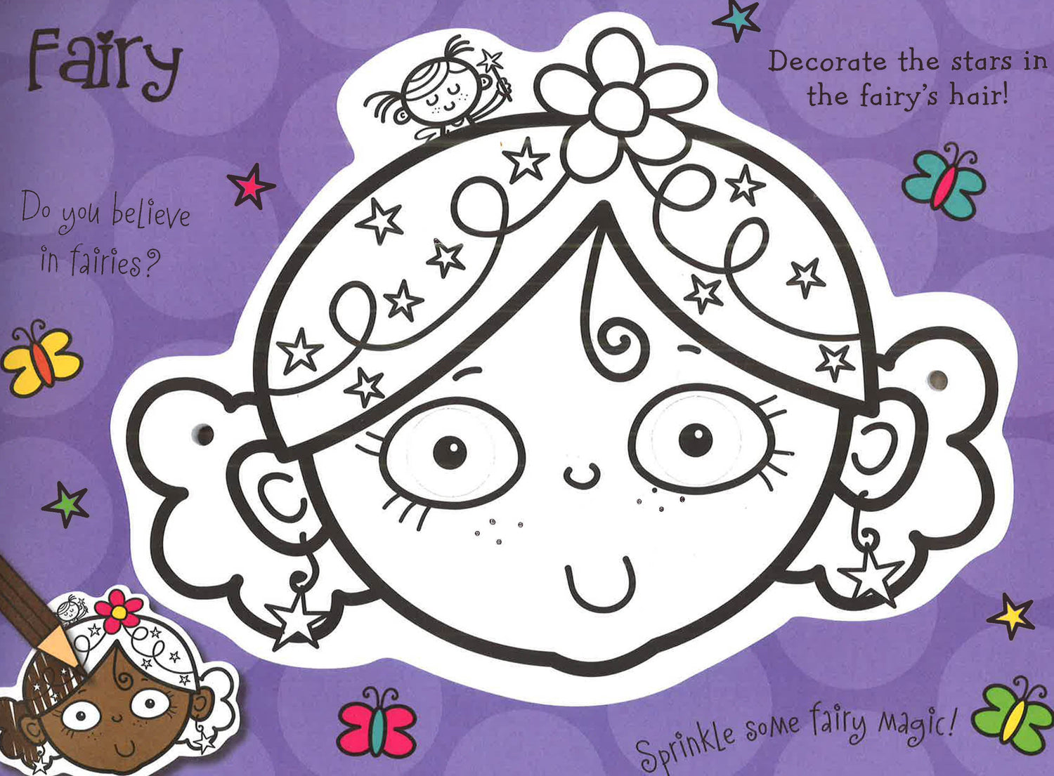 Each page contains a different mask to color and design and gives bold outlines to inspire children and guide them in their doodles. When each mask is finished, it can be cut out ready-to-wear with the elastic headbands that are included. Children will love transforming themselves into a pirate, a bunny rabbit, or even a robot. With delightful illustrations by John Abbott and plenty of space for children to be creative, these masks will keep children actively entertained for hours at a time.