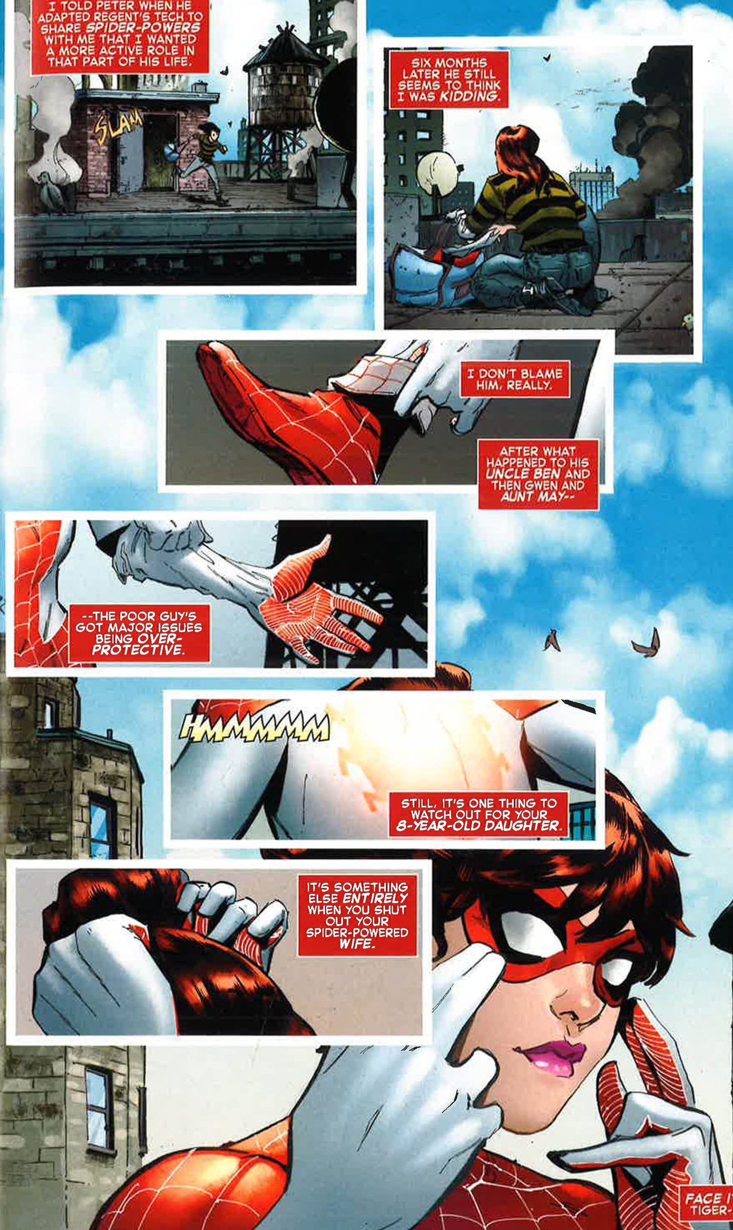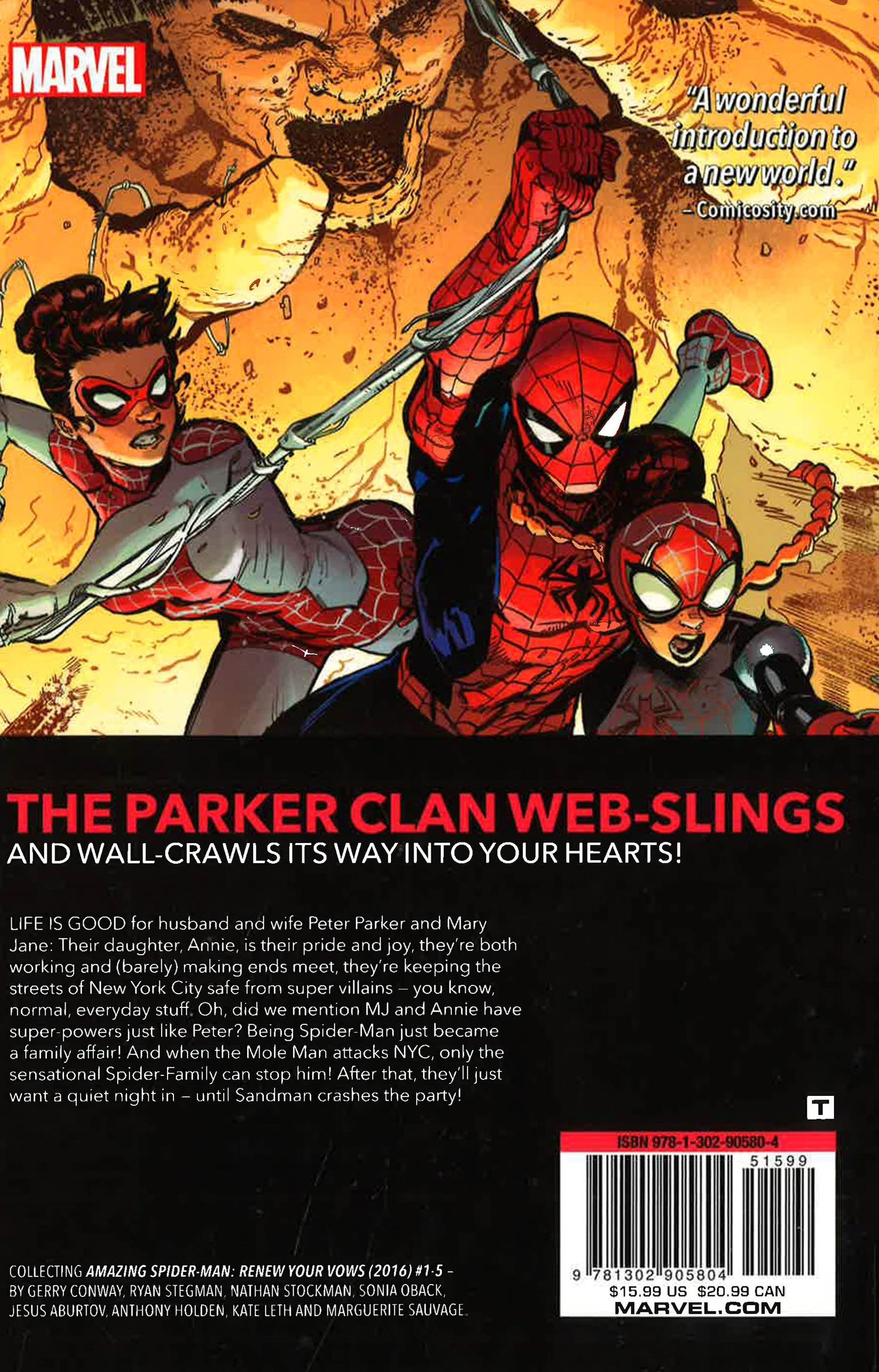 The Parker clan web-sling and wall-crawl their way into your hearts! Life is good for husband and wife Peter Parker and Mary Jane: their daughter Annie is their pride and joy, they're both working and (barely) making ends meet, they're keeping the streets of New York City safe from super villains...you know, normal everyday stuff. Oh, did we mention MJ and Annie have super-powers just like Peter? Being Spider-Man just became a family affair! And when the Mole Man attacks NYC, only the sensational Spider-Family can stop him!