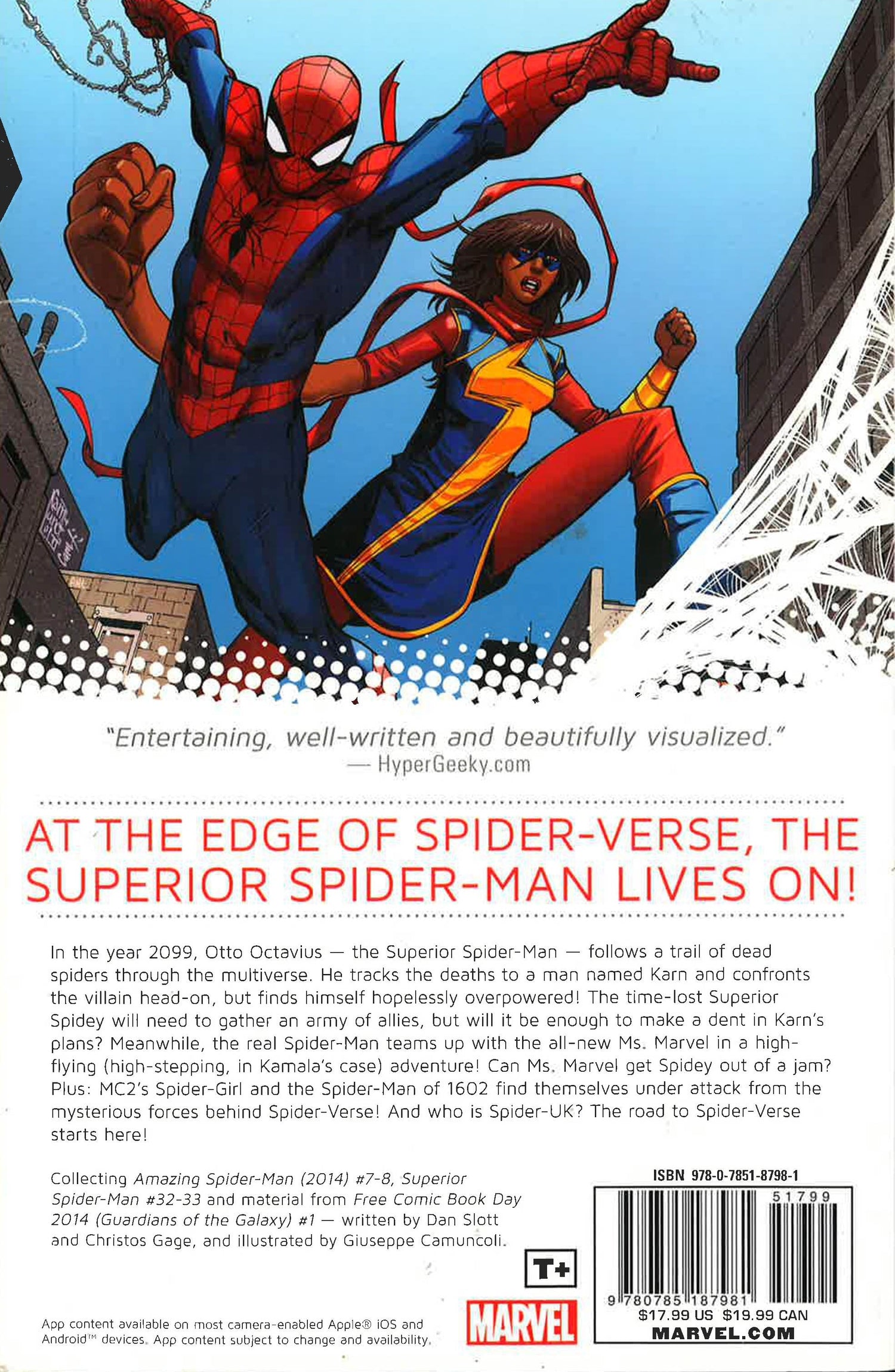 Step over the edge of Spider-Verse! Spidey teams up with the all-new Ms. Marvel in a high-flying (high-stepping in Kamala's case) adventure! Can Ms. Marvel get Spidey out of a jam? Plus, MC2's Spider-Girl and the Spider-Man of 1602 find themselves under attack from the mysterious forces behind Spider-Verse! And who is Spider-UK? Meanwhile, in the year 2099, the Superior Spider-Man lives on - but how? Otto takes the fight to Karn, the man working his way through the multiverse leaving a trail of dead spiders in his wake, but finds himself hopelessly overpowered. Can the Superior Spidey find enough allies to make a dent in Karn? The road to Spider-Verse starts here! *This book may have a remainder mark*