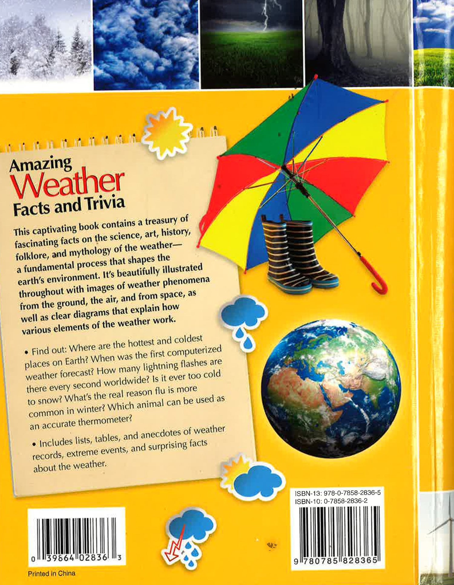 Each book in the 6.5in x 8in "Amazing Facts and Trivia" series is beautifully illustrated and contains hundreds of colorful pieces of artwork, photographs, and diagrams. These quirky books are designed to be opened to any page so that readers can discover intriguing stories, facts, tips, and trivia. This captivating book contains a treasury of fascinating facts on the science, art, history, folklore, and mythology of the weather--a fundamental process that shapes the earth's environment. It's beautifully illustrated throughout with images of weather phenomena from the ground, the air, and from space, as well as clear diagrams that explain how various elements of the weather work. Includes lists, tables, and anecdotes of weather records, extreme events, and surprising facts about the weather. Whether you are caught in a heavy rain shower, feeling overhwelmed in the heat of the Sun or digging yourself out of a snowdrift--and even if you are just going about your everyday routines--the weather affects you. It helps you determine what you can and cannot do, how you dress, your behavior, even your health. And if you are in business, the weather can affect your sales, too.