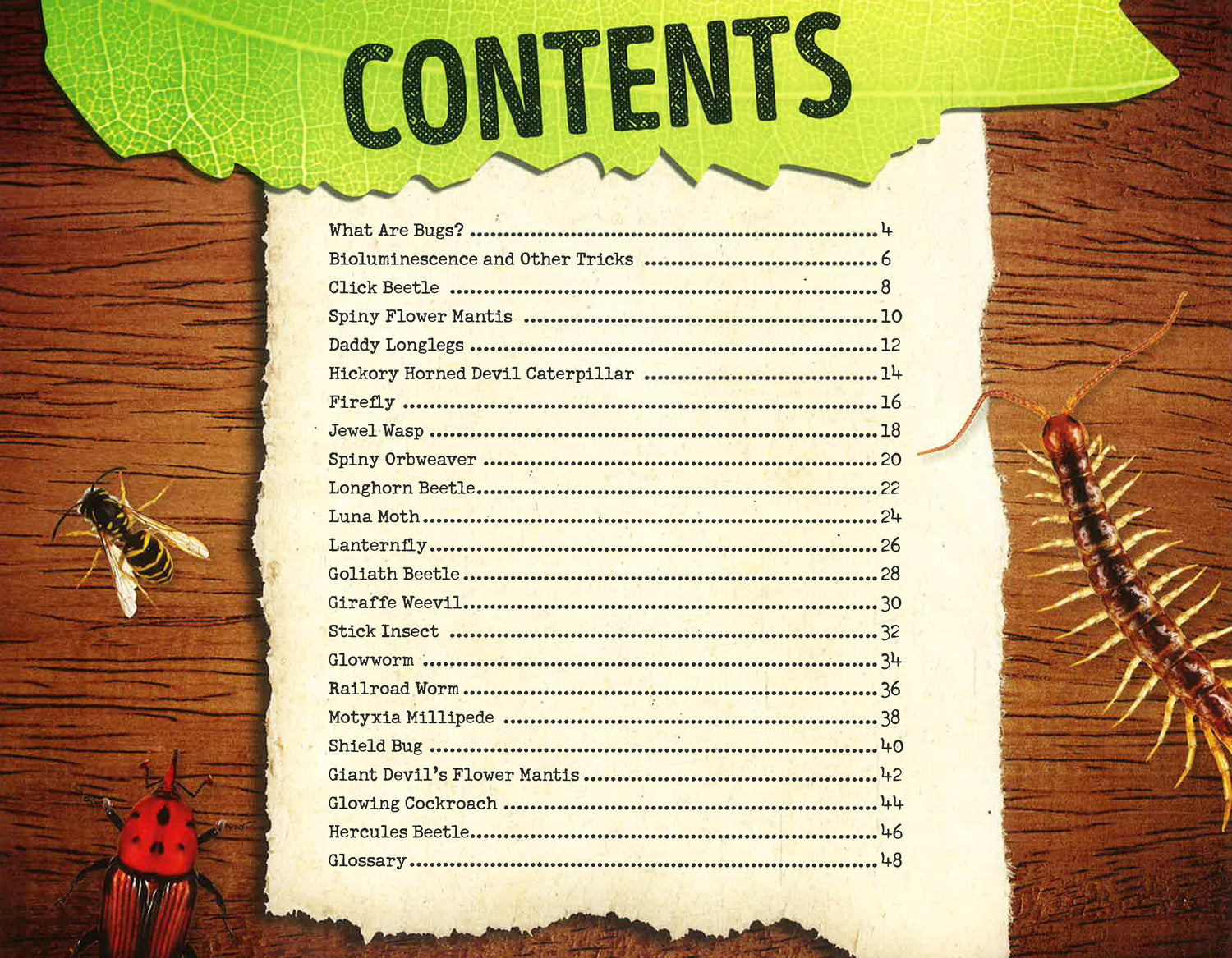 Kids learn about where each bug lives, what they eat, how they survive predators much, MUCH larger than they are, and so much more! The book comes with 13 reusable glow-in-the-dark plastic stickers.