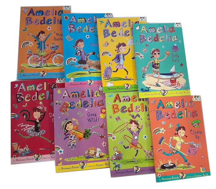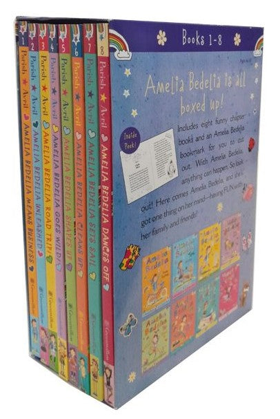 Amelia Bedelia is all boxed up. Includes eight funny chapter books and an Amelia Bedelia bookmark for you to cut out. With Amelia Bedelia, anything can happen. So look out! Here comes Amelia Bedelia, and she’s got one thing on her mind — having fun with her family and friends! 8 Book Set Includes: 1. Amelia Badelia Means Business Amelia Bedelia makes her chapter book debut! In Amelia Bedelia Means Business, a New York Times bestseller and the first book in the popular chapter book series, young Amelia Bedelia will do almost anything for a shiny new bicycle. 2. Amelia Badelia Unleashed In Amelia Bedelia Unleashed, the second book in Amelia Bedelia’s new chapter book series, Amelia Bedelia goes to the dogs and discovers why puppies rule! When her parents agree to let Amelia Bedelia get a puppy, she is surprised and happy! But there are hundreds and maybe even thousands of puppies to choose from. How will Amelia Bedelia ever find the perfect four-legged friend? 3. Amelia Badelia Road Trip In the third book in the New York Times-bestselling chapter book series about the childhood of America's favourite housekeeper, Amelia Bedelia piles into the family car and takes a road trip with her family. 4. Amelia Badelia Goes Wild Amelia Bedelia, America's favourite housekeeper, had a childhood full of surprises, mischief, and hilarious misunderstandings. In this illustrated chapter book adventure, just right for fans of Judy Moody and Ivy + Bean, young Amelia Bedelia and her friends build a zoo in the backyard (complete with stuffed animals and attractions) and offer safari adventures to the entire neighbourhood. This is the fourth book in the nationally bestselling Amelia Bedelia chapter book series, and it is just right for newly independent readers ready for a more challenging vocabulary and books with chapters. Amelia Bedelia takes everything literally, and that leads to all kinds of silly misunderstandings. 5. Amelia Badelia Shapes Up Amelia Bedelia's friends and classmates all have a particular sport that they love and are good at. Amelia Bedelia loves sports and games of all kinds, for different reasons. She has fun (and she loves to dribble and dunk and run home) but she is not the fastest or strongest or quickest at anything. Amelia Bedelia would love to have a sport to call her own and so she goes on a mission to find one, with hilarious results. 6. Amelia Badelia Cleans Up With Amelia Bedelia, anything can happen! Amelia Bedelia and her friends are determined to find a cool clubhouse, maybe even a tree house for their explorers' club! One day they discover an empty lot with a huge tree in the middle of it. It's the perfect spot for club headquarters. The lot is a mess, so they pitch in and clean it up. And that's when the trouble really starts. Look out! Here comes Amelia Bedelia and she is sweeping everything out of her path! In the sixth book in the New York Times-bestselling chapter book series about the childhood of America's favourite housekeeper, Amelia Bedelia and her friends clean up a vacant lot in their neighbourhood and build a clubhouse for explorers. 7. Amelia Badelia Sets Sail Amelia Bedelia and her mother share a summer vacation home at the shore with her aunt Mary (her mother’s sister) and her cousin, Jason, who is younger than Amelia Bedelia. (The dads join them on the weekends for special events or festivals, but this story is about two moms and two kids having fun, literally, at the seashore.) Initially, Amelia Bedelia is slightly resentful about having to chaperone her younger cousin. But his sense of adventure and nose for trouble quickly bond them. Through a shopkeeper, the moms hear about Melanie, a girl who is in between the ages of their two children and lives in the shore town year-round. She is shy and described as needing to “come out of her shell. ” Amelia Bedelia is looking forward to meeting either a very small girl or seeing a very big shell to add to her growing collection. With Melanie as guide, the kids have various adventures. They build sand castles, swim and body surf, experience a shark scare, and spend the day at a water park. They clam, shrimp, and go crabbing, kayaking, and sailing. As much fun as their nautical adventures are, the lives of this trio get way more exciting when they stumble on what may be treasure, buried by a pirate who sailed these same waters. 8. Amelia Badelia Dances Off In the eighth chapter book in the New York Times–bestselling series, Amelia Bedelia puts on her dancing shoes and dances up a storm! The Amelia Bedelia books have sold more than 35 million copies since we first met the iconic character in 1963! All of Amelia Bedelia’s friends love to dance. She has friends who are ballerinas, friends who do modern dance, and friends who tap. But Amelia Bedelia isn’t sure what kind of dance is right for her. After all, if she is going to dance to a particular tune, she’d like it to be her own! Amelia Bedelia’s funny search for the perfect dance fit involves friends, family, teachers, and pets, and it will have readers dancing on air! The Amelia Bedelia chapter books star Amelia Bedelia as a young girl and feature funny family and friendship stories just right for fans of Judy Moody and Ivy + Bean.