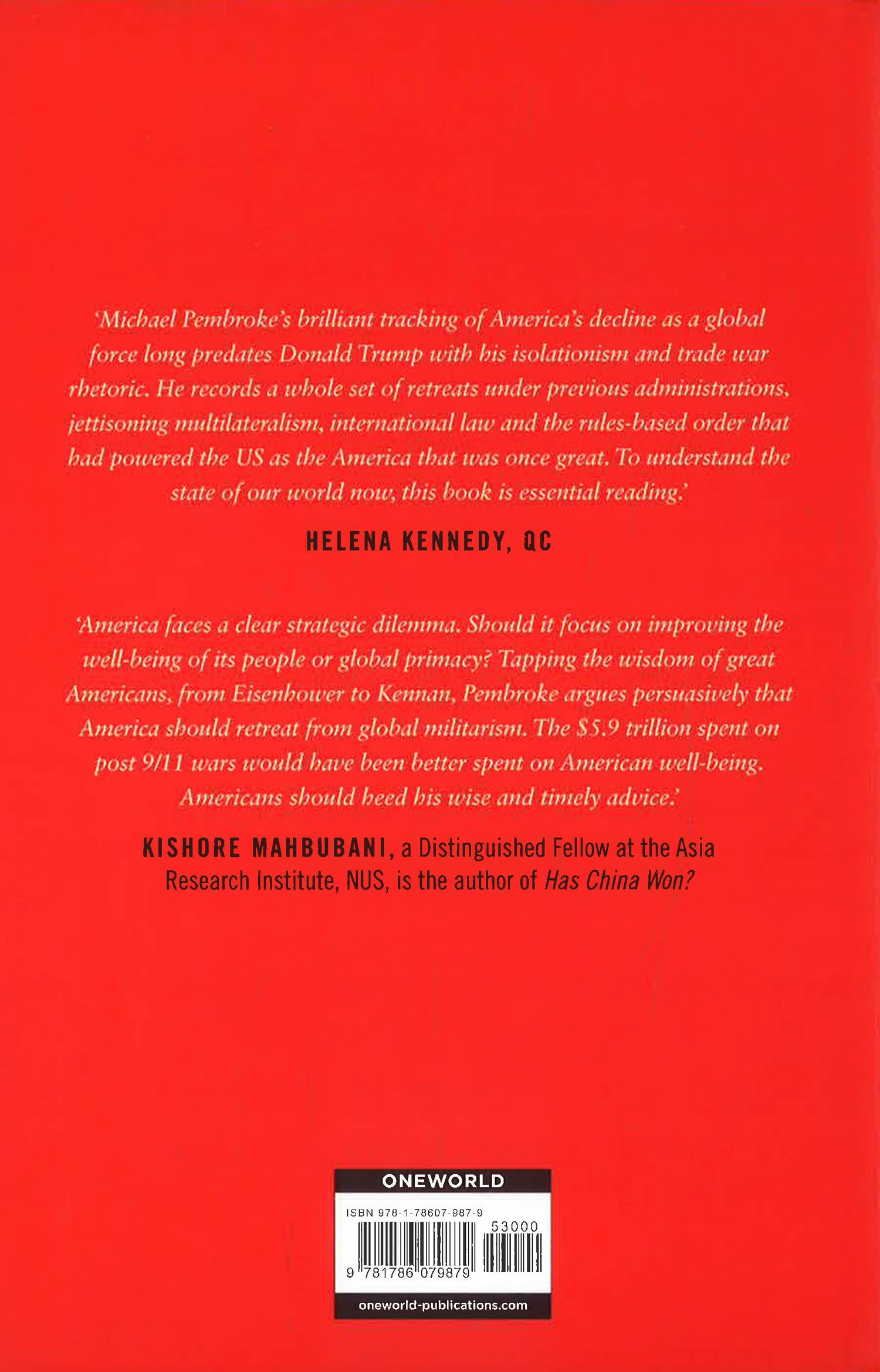 Covering wars in Korea, Vietnam, Iraq and Afghanistan, interventions in Iran, Guatemala and Chile, and a retreat from international engagement with the UN, WHO and, increasingly, trade agreements, Pembroke sketches the history of America’s retreat from universal principles to provide a clear-eyed analysis of the dangers of American exceptionalism.
