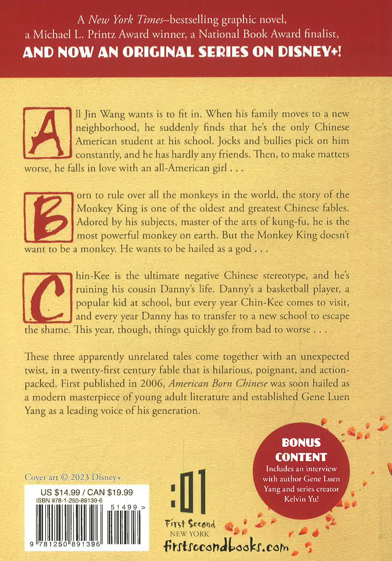 A tour-de-force by New York Times bestselling graphic novelist Gene Luen Yang, American Born Chinese tells the story of three apparently unrelated characters: Jin Wang, who moves to a new neighborhood with his family only to discover that he's the only Chinese-American student at his school; the powerful Monkey King, subject of one of the oldest and greatest tales from Chinese folklore; and Chin-Kee, a personification of the ultimate negative Chinese stereotype, who is ruining his cousin Danny's life with his yearly visits. Their lives and stories come together with an unexpected twist in a twenty-first-century fable that is hilarious, poignant, and action-packed. First published in 2006, American Born Chinese was soon hailed as a modern masterpiece of young adult literature and established Gene Luen Yang as a leading voice of his generation.