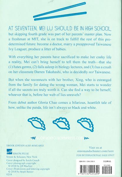 From debut author Gloria Chao comes a hilarious, heartfelt tale of how unlike the panda, life isn't always so black and white. "Charmed my socks off." -David Arnold, New York Times bestselling author of Kids of Appetite and Mosquitoland"A soulful and hilarious debut." -Booklist (starred review)"Effervescent." -Publishers Weekly (starred review)"An earnest, funny, and emotional story." -Book Riot An incisive, laugh-out-loud contemporary debut about a Taiwanese-American teen whose parents want her to be a doctor and marry a Taiwanese Ivy Leaguer despite her squeamishness with germs and crush on a Japanese classmate. At seventeen, Mei should be in high school, but skipping fourth grade was part of her parents' master plan. Now a freshman at MIT, she is on track to fulfill the rest of this predetermined future: become a doctor, marry a preapproved Taiwanese Ivy Leaguer, produce a litter of babies. With everything her parents have sacrificed to make her cushy life a reality, Mei can't bring herself to tell them the truth-that she (1) hates germs, (2) falls asleep in biology lectures, and (3) has a crush on her classmate Darren Takahashi, who is decidedly not Taiwanese. But when Mei reconnects with her brother, Xing, who is estranged from the family for dating the wrong woman, Mei starts to wonder if all the secrets are truly worth it. Can she find a way to be herself, whoever that is, before her web of lies unravels?
