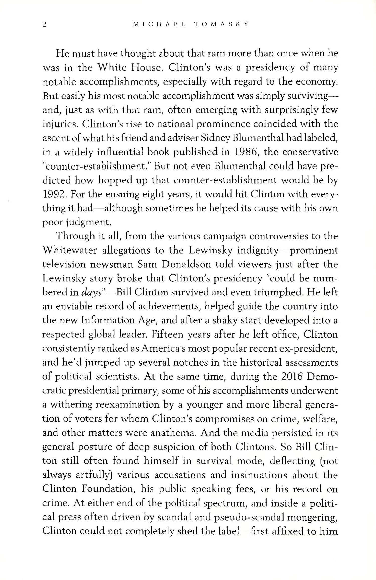 Bill Clinton: a president of contradictions. He was a Rhodes Scholar and a Yale Law School graduate, but he was also a fatherless child from rural Arkansas. He was one of the most talented politicians of his age, but he inspired enmity of such intensity that his opponents would stop at nothing to destroy him. He was the first Democrat since Franklin Roosevelt to win two successive presidential elections, but he was also the first president since Andrew Johnson to be impeached.