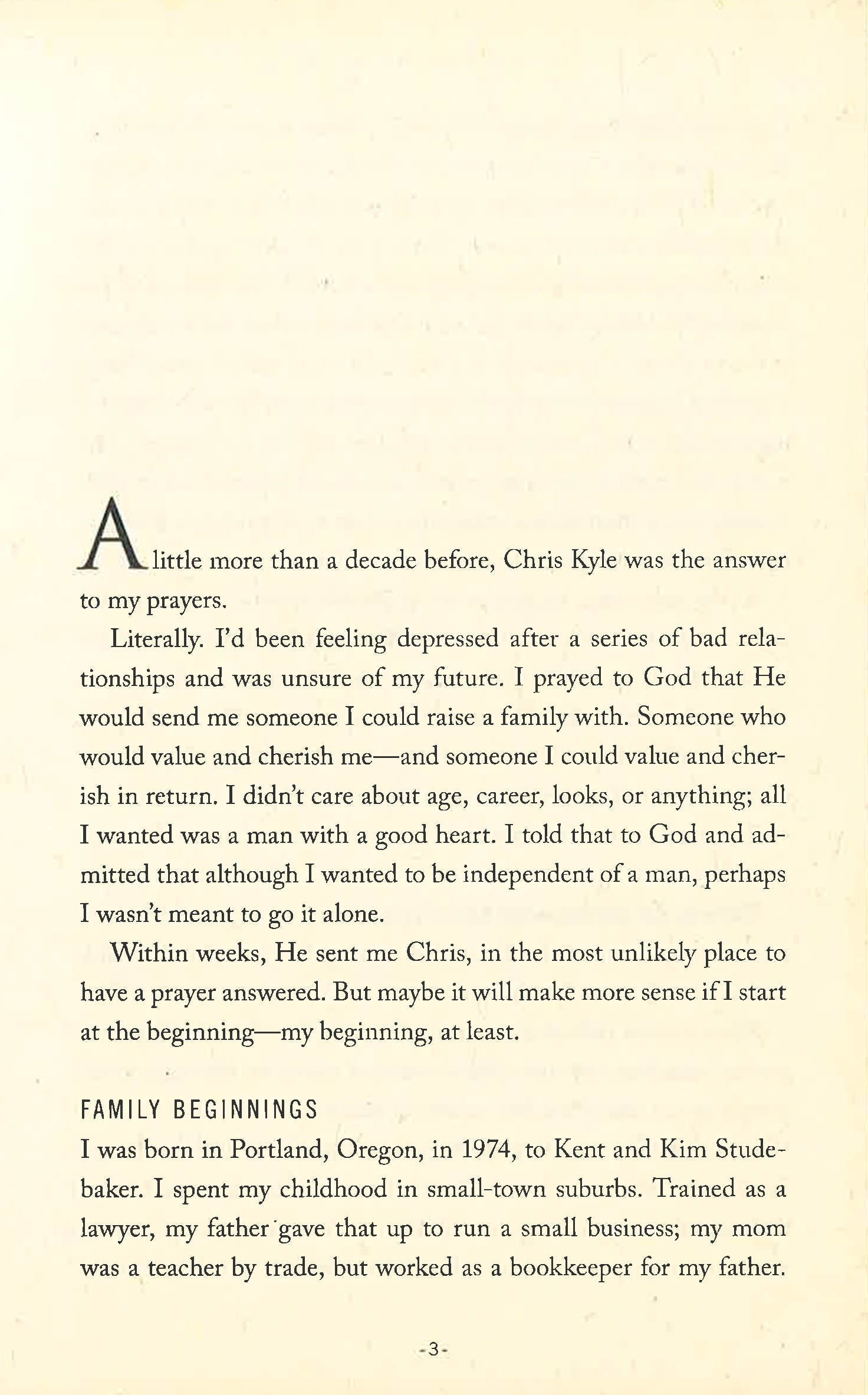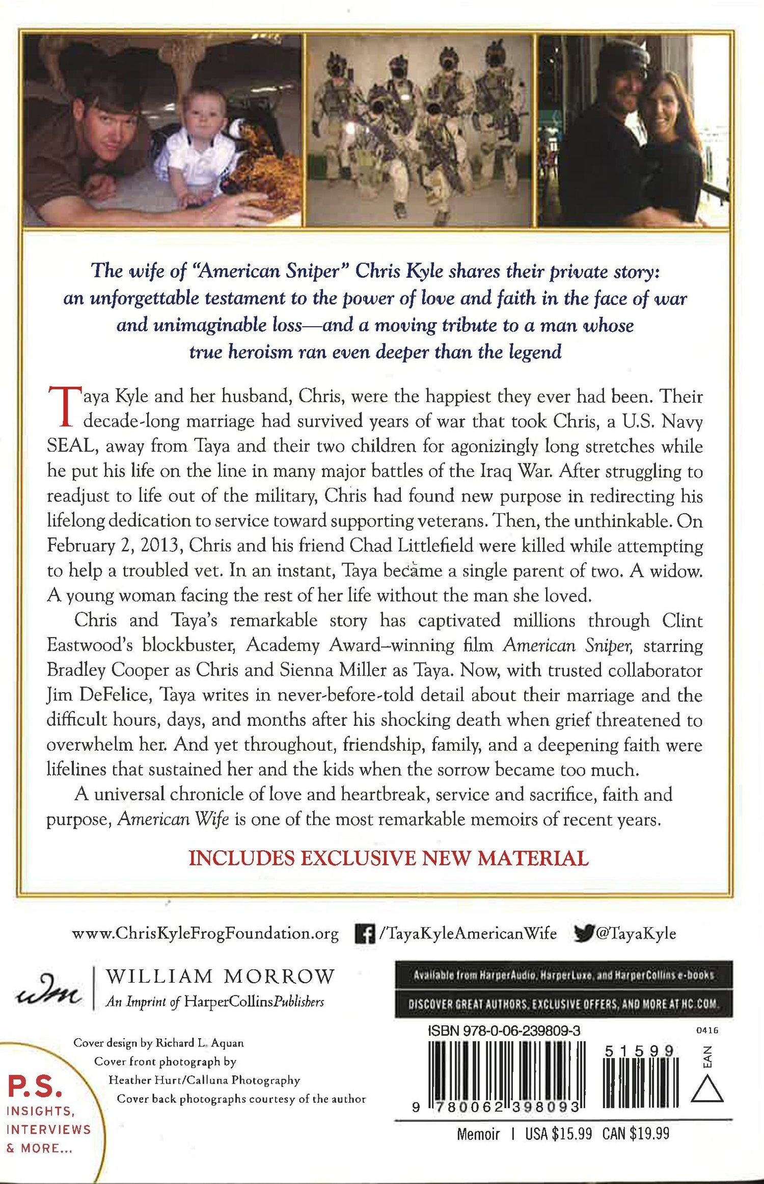 The wife of "American Sniper" Chris Kyle shares their private story: an unforgettable testament to the power of love and faith in the face of war and unimaginable loss - and a moving tribute to a man whose true heroism ran even deeper than the legend.