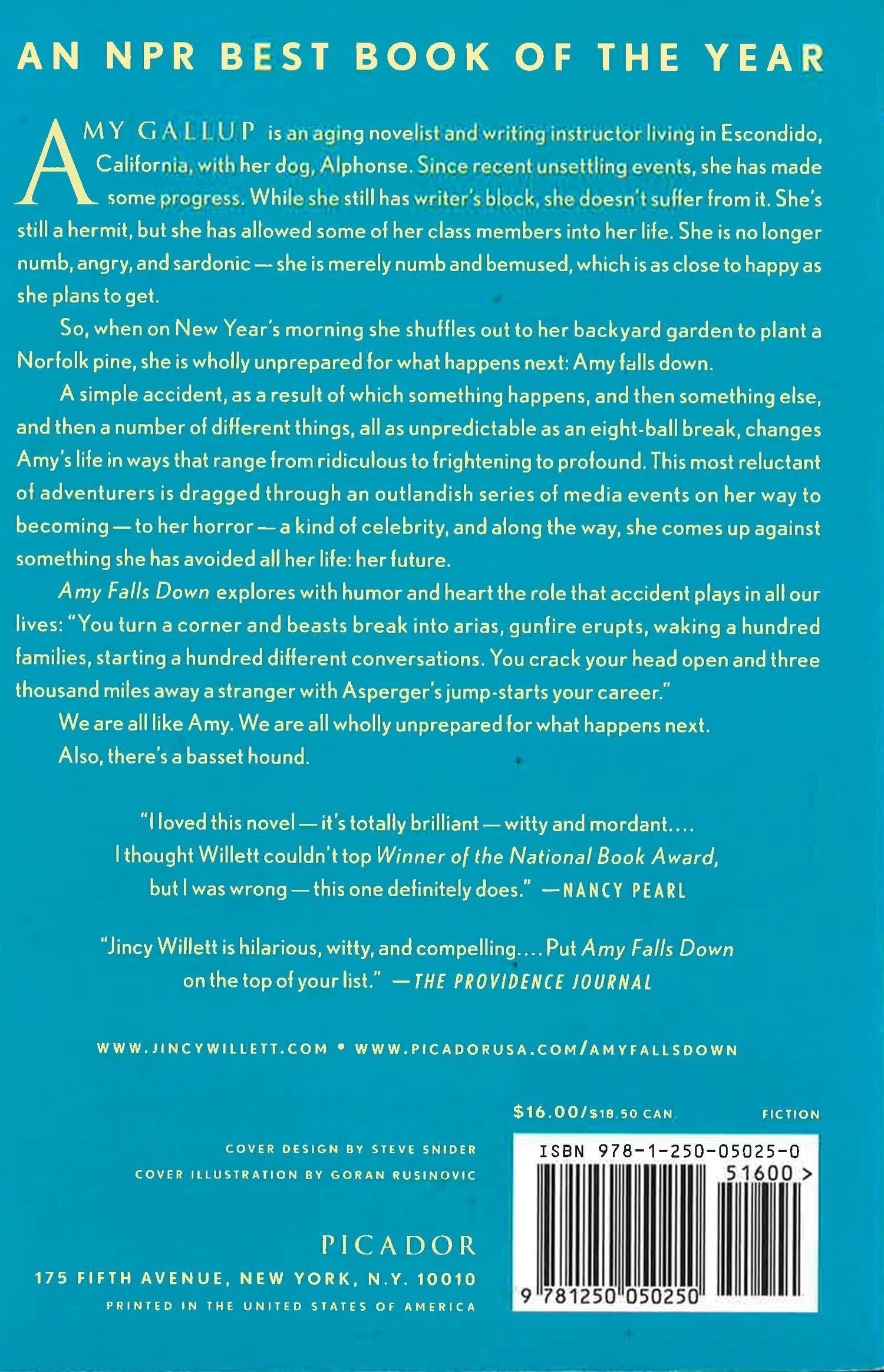The endearingly bitter writer, Amy Gallup has happily isolated herself from the world spending the last two decades teaching and previewing - she's done a lot of thinking . . . but very little writing. On an unassuming morning, in her slippers, Amy trips in her backyard, goes head-over-heels, and into the side of a birdbath. The hospital clears her of head injury - so Amy returns home. When a local reporter shows up for a scheduled interview, Amy is not quite herself. The article paints Amy as a the zen-goddess of writing, publishing . . . and life. Her bizarre interview was interpreted as the rambling of a true genius. But all that really happened was: Amy fell down! The next thing she knows, friends and fans are coming out of the woodwork. Suddenly Amy is on radio shows, keynoting a major publishing event, and guiding a local writers' retreat. But the strangest thing of all: Amy starts to write.
