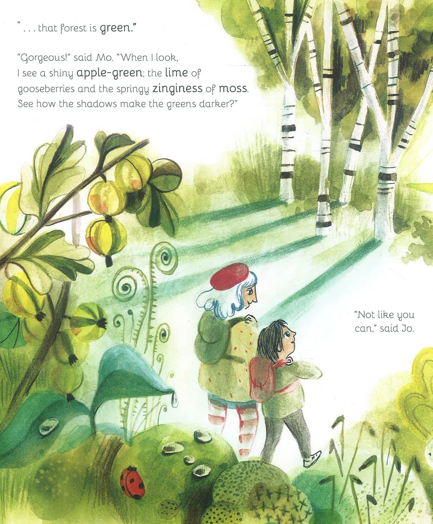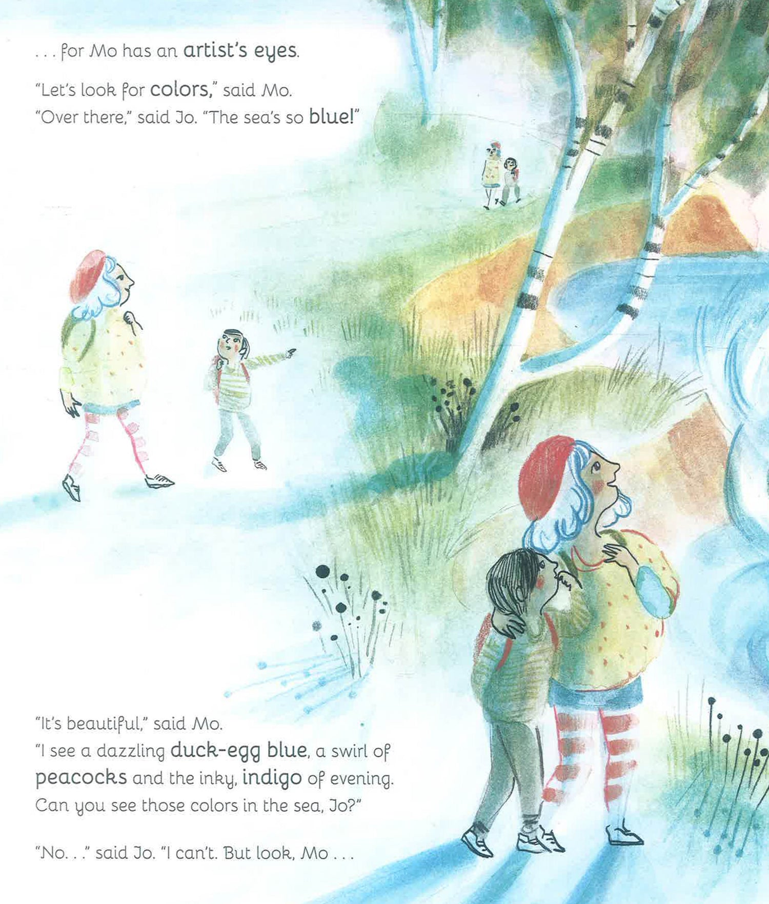 From the autumn oranges of the forest floor to pink and lilac pigeons in flight, Mo teaches Jo to trust his own eyes, and to see like an artist.