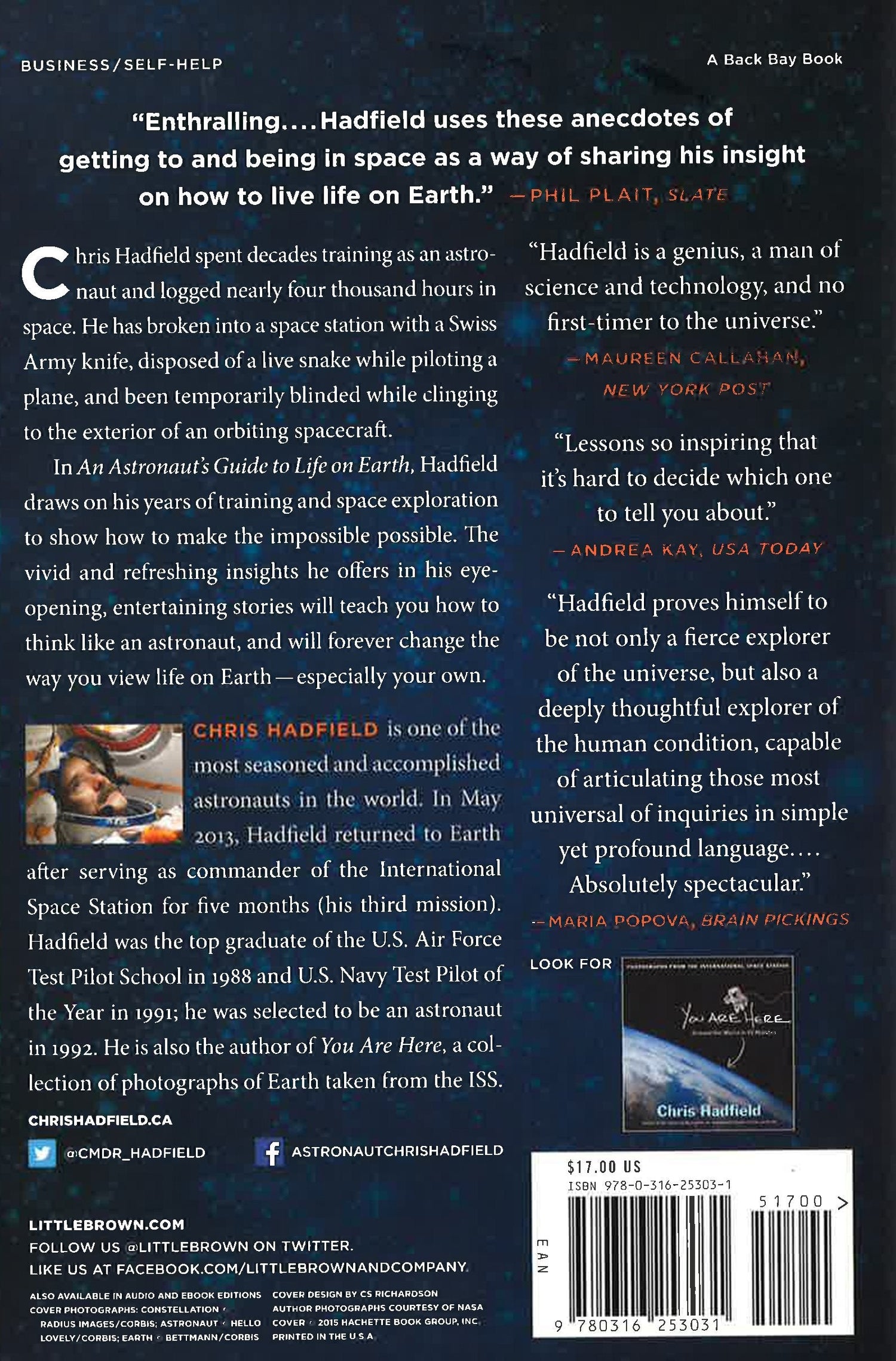 Chris Hadfield has spent decades training as an astronaut and has logged nearly 4000 hours in space. During this time he has broken into a Space Station with a Swiss army knife, disposed of a live snake while piloting a plane, and been temporarily blinded while clinging to the exterior of an orbiting spacecraft. In his bestselling An Astronaut's Guide to Life on Earth, Hadfield takes readers deep into his years of training and space exploration to show how to make the impossible possible. Through eye-opening, entertaining stories, his vivid and refreshing insights will teach you how to think like an astronaut, and will change, completely, the way you view life on Earth - especially your own.