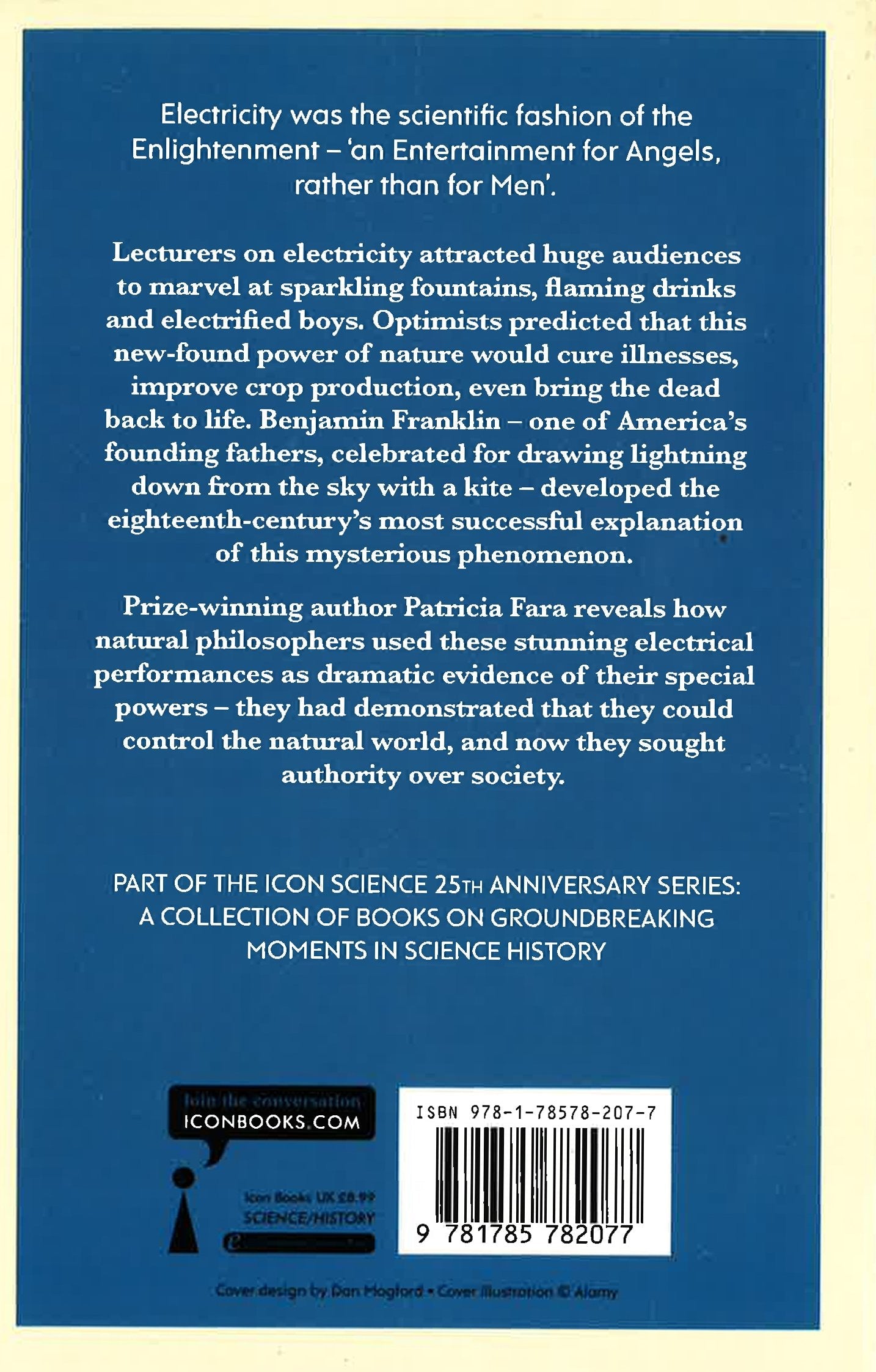 Electricity was the scientific fashion of the Enlightenment, 'an Entertainment for Angels, rather than for Men'. Lecturers attracted huge audiences to marvel at sparkling fountains, flaming drinks, pirouetting dancers and electrified boys. Enlightenment optimists predicted that this new-found power of nature would cure illnesses, improve crop production, even bring the dead back to life. Benjamin Franklin, better known as one of America's founding fathers, played a key role in developing the new instruments and theories of electricity during the eighteenth century. Celebrated for drawing lightning down from the sky with a kite, Franklin was an Enlightenment expert on electricity, developing one of the most successful explanations of this mysterious phenomenon. But Patricia Fara, Senior Tutor of Clare College Cambridge, reveals how the study of electricity became intertwined with Enlightenment politics. By demonstrating their control of the natural world, Enlightenment philosophers hoped to gain authority over society. And their stunning electrical performances provided dramatic evidence of their special powers.