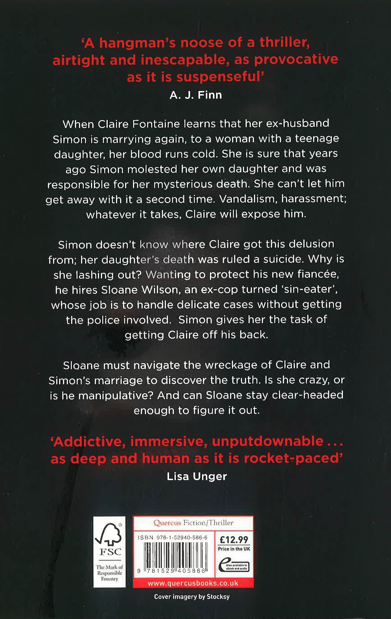 Simon doesn't know where Claire got this delusion from; her daughter's death was ruled a suicide, but she has always blamed herself - is she just lashing out? Wanting to protect his new fiancee, he hires Sloane Wilson, an ex-cop turned 'sin-eater', whose job it is to handle delicate cases without getting the police involved, to get Claire off his back.