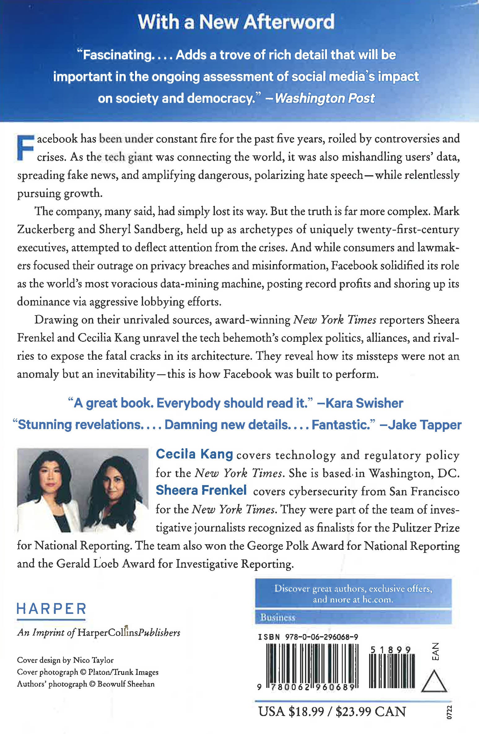 Award-winning New York Times reporters Sheera Frenkel and Cecilia Kang unveil the tech story of our times in a riveting, behind-the-scenes exposé that offers the definitive account of Facebook’s fall from grace.