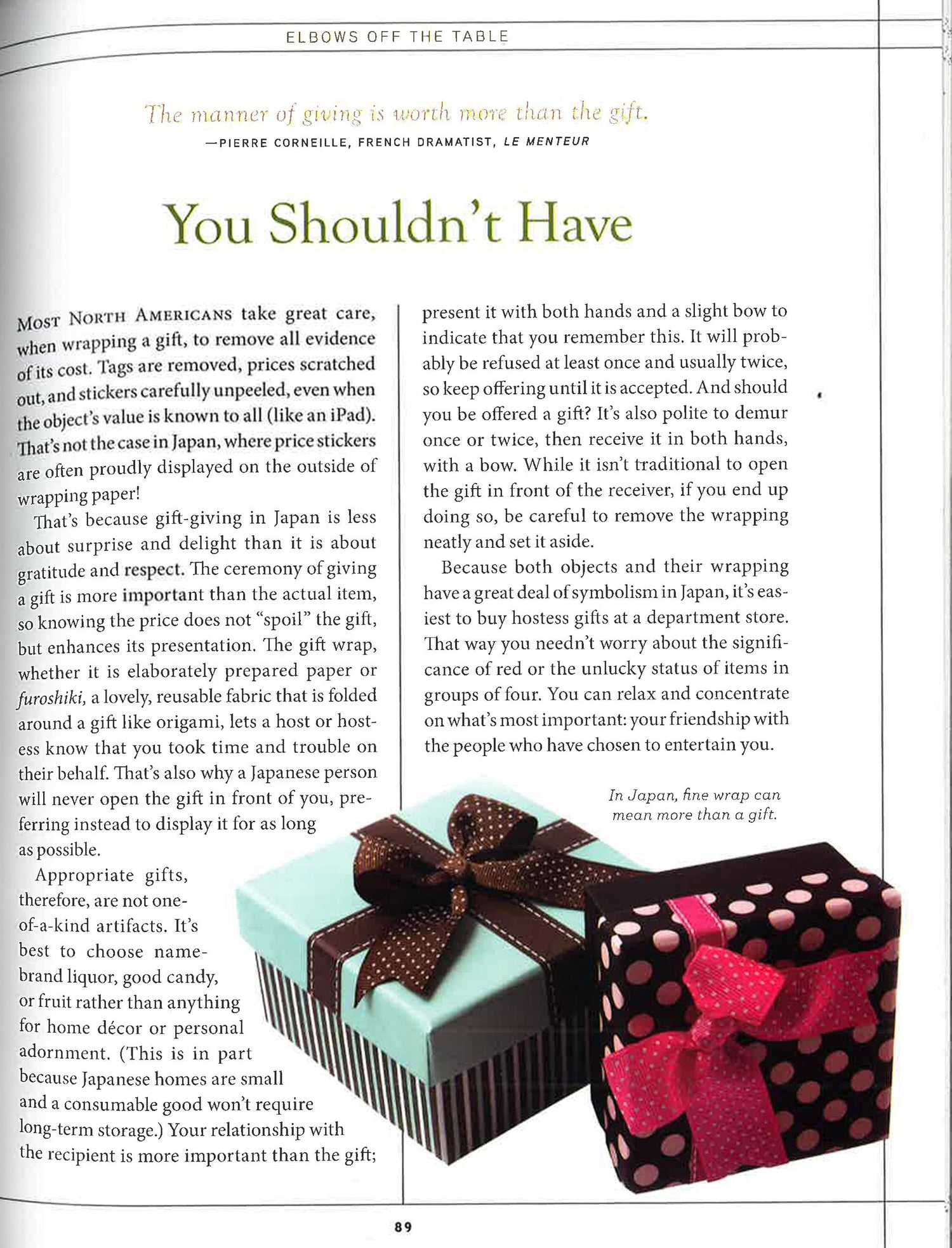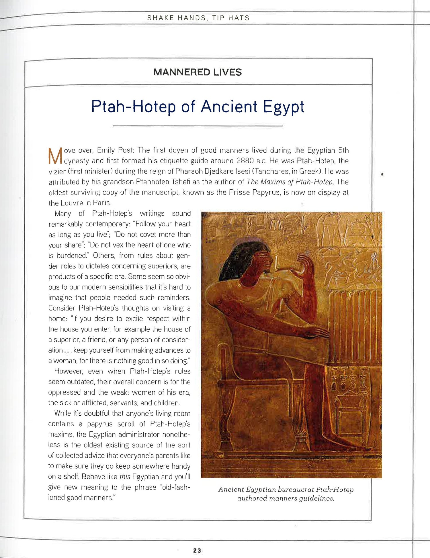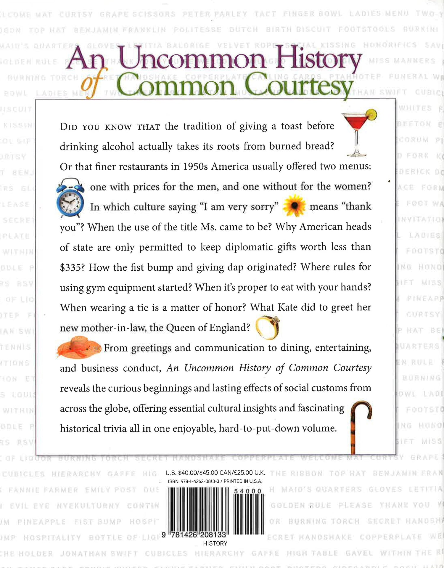 With engaging and artfully presented text, including sidebars on media mavens throughout history, social gaffes, and archaic manners, this book is as entertaining as it is informative. Readers delve into cultural similarities and differences through lively passages, colorful photography, and sidebars on unique history. Topics include Courtesies and Greetings, Communication and Correspondence, Dining and Entertaining, Hierarchies and Protocol, Hospitality and Occasions, Amusements and Institutions, Boundaries and Cultural Differences, New Technology and Old Manners. Whether you are planning a trip abroad or just want a fascinating, browsable read, find out what is universal and what is merely a product of one's culture.