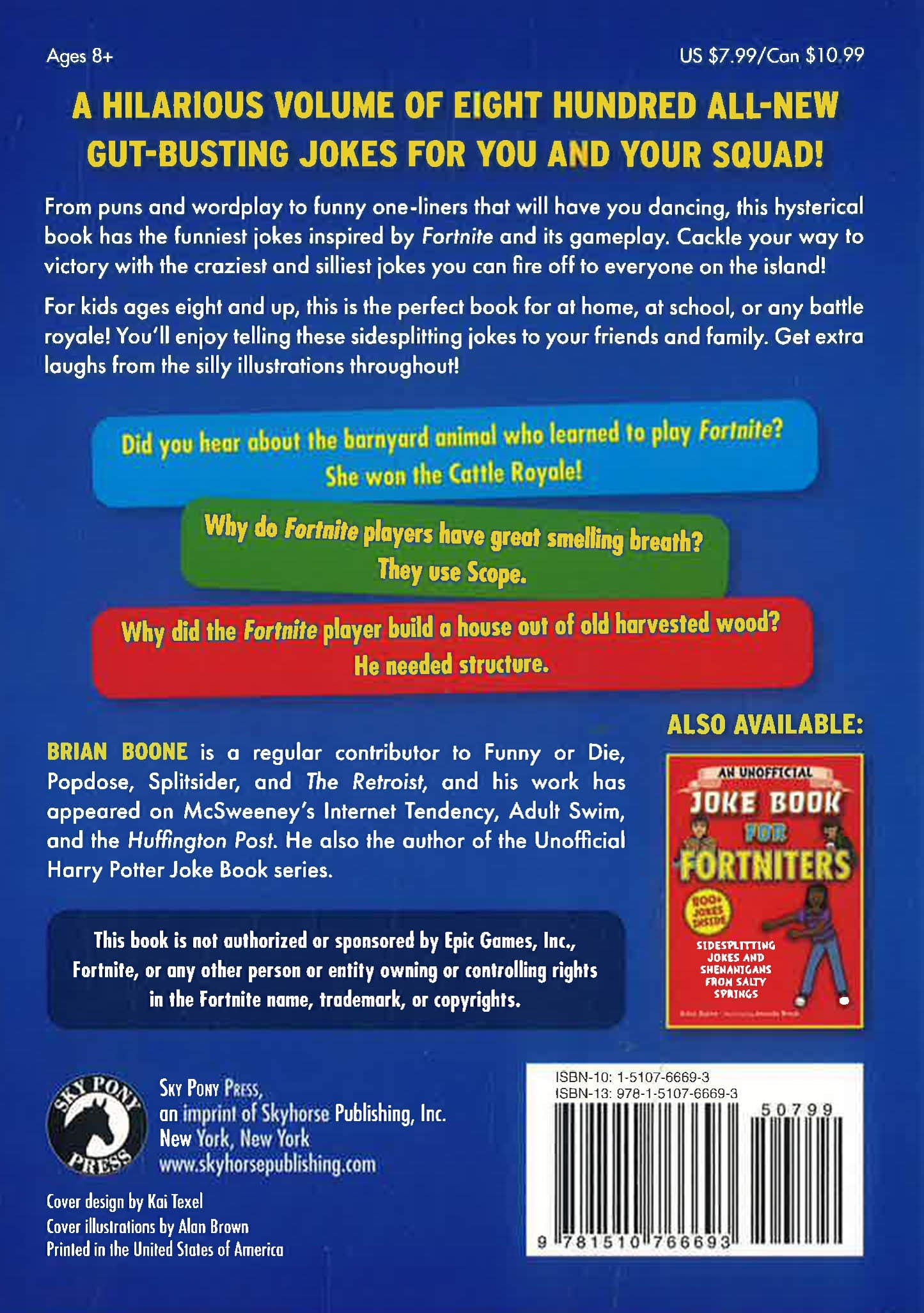 If you loved An Unofficial Joke Book for Fortniters: Sidesplitting Jokes from Salty Springs, you'll love this volume eight hundred all-new gut-busting jokes for you and your squad!