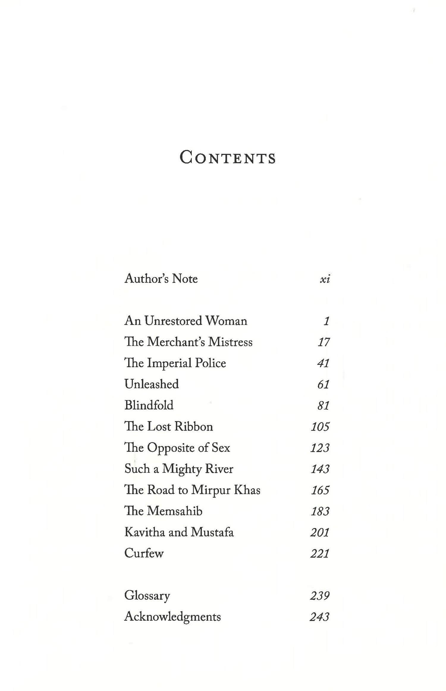 In An Unrestored Woman, the partition of India and Pakistan in 1947 cuts a jagged path through the lives of ordinary women and men, leaving ripples of sorrow through time and space. Each couplet of stories spans the Indian subcontinent, from refugee camps and torched trains to the spacious verandas of the British Raj, and billows into the wider world. An old woman recounts the murdering of what was most precious to her, and the many small cuts that led her to that act. A girl forced into prostitution wields patience as deftly as a weapon, and manages to escape her fate. An Indian servant falls in love with his employer, and spins a twisted web of deceit.The characters in these fearless stories stumble - occasionally towards love, more often towards survival - and find that history, above all, is their truest and greatest opponent. And what emerges, in the midst of newly erected barriers, boundaries, and nations, is a journey into the centre of the only place that matters - the human heart.