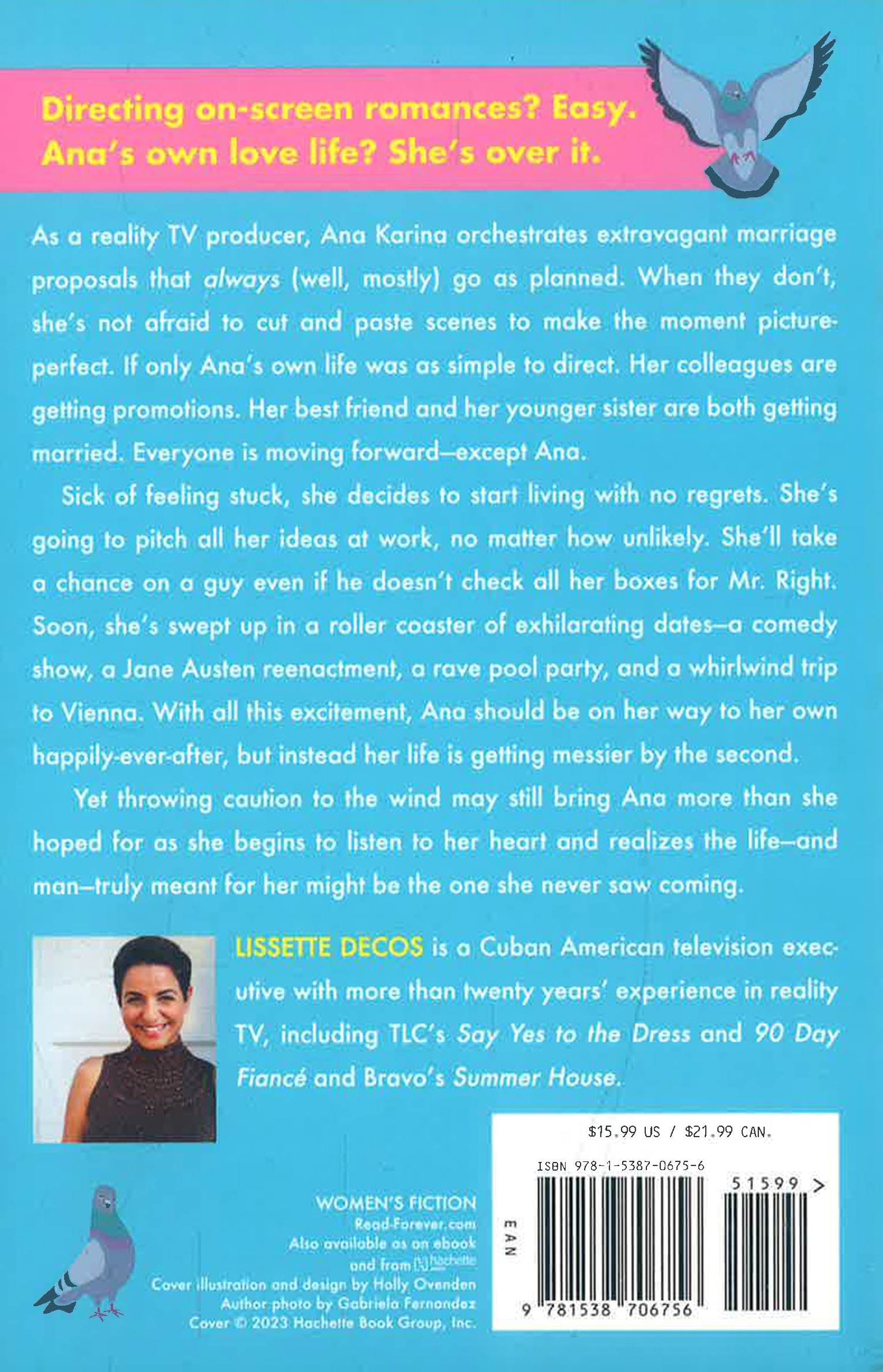 As a reality TV producer, Ana Karina orchestrates extravagant marriage proposals that always (well, mostly) go as planned. When they don’t, she’s not afraid to cut and paste scenes to make the moment picture-perfect. If only Ana’s own life was as simple to direct. Her colleagues are getting promotions. Her best friend and her younger sister are both getting married. Everyone is moving forward—except Ana.