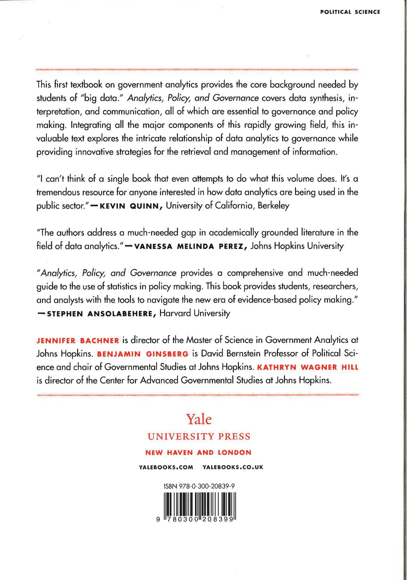 The first available textbook on the rapidly growing and increasingly important field of government analytics