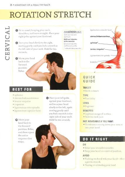 Anatomy of a Healthy Back goes beneath the skin to allow you to see which muscles you are exercising and stretching. A solid understanding of muscle building and stretching is the key to achieving a healthy back and a supple body. With full-colour photographs, clear step-by-step instructions for each movement and tips on what to look for, these books provide essential insights into your body and your exercise and stretching routines.