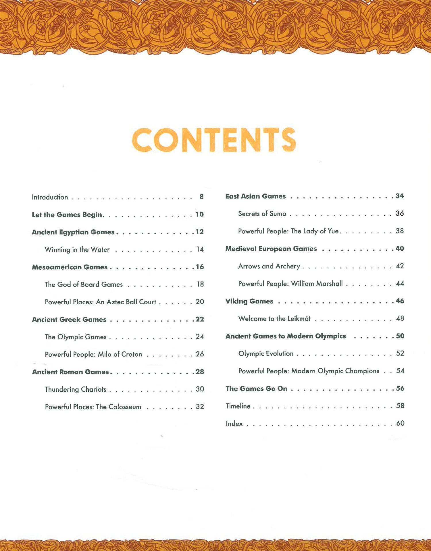 Run with the Olympic athletes and sweat it out in the deadly ballgame courts of the Aztecs in this beautifully illustrated and informative guide to the sports and games that have entertained people for the past 2500 years.