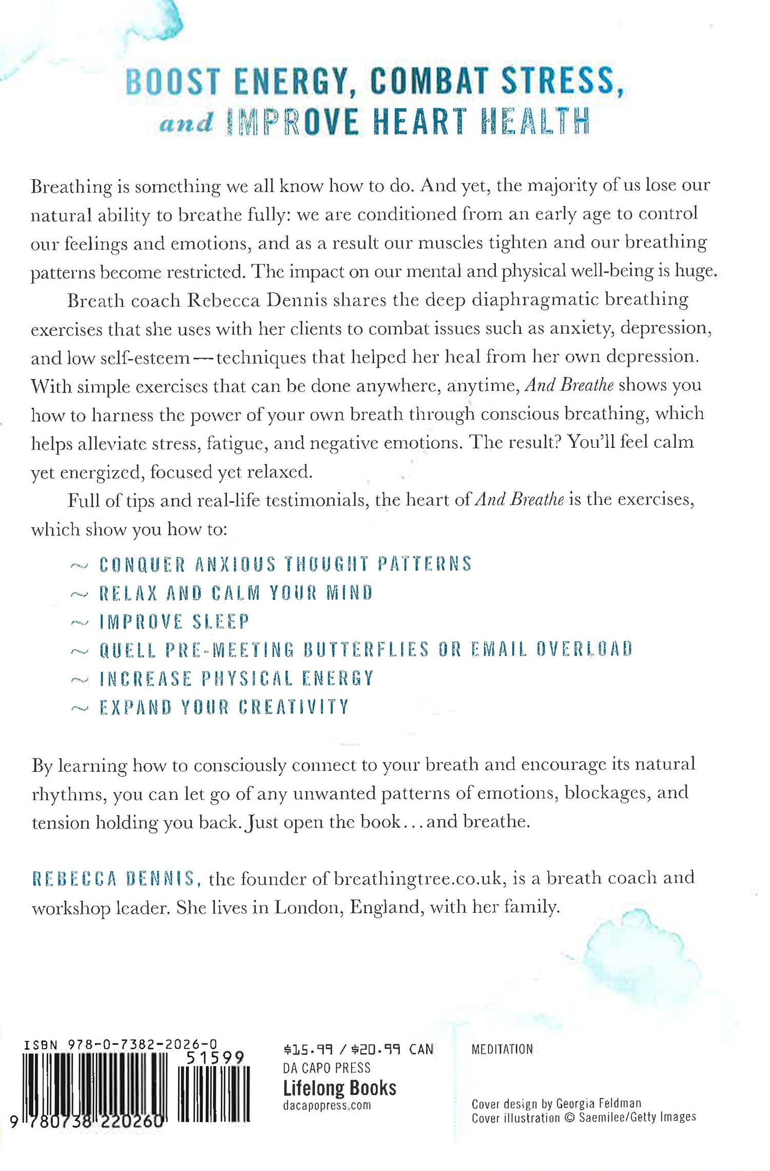 Breath coach Rebecca Dennis shares the deep diaphragmatic breathing exercises that she uses with her clients to combat issues such as anxiety, depression, and low self-esteem--techniques that helped her heal from her own depression. With simple exercises that can be done anywhere, anytime, And Breathe shows you how to harness the power of your own breath through conscious breathing, which helps alleviate stress, fatigue, and negative emotions. The result? You'll feel calm yet energized, focused yet relaxed.