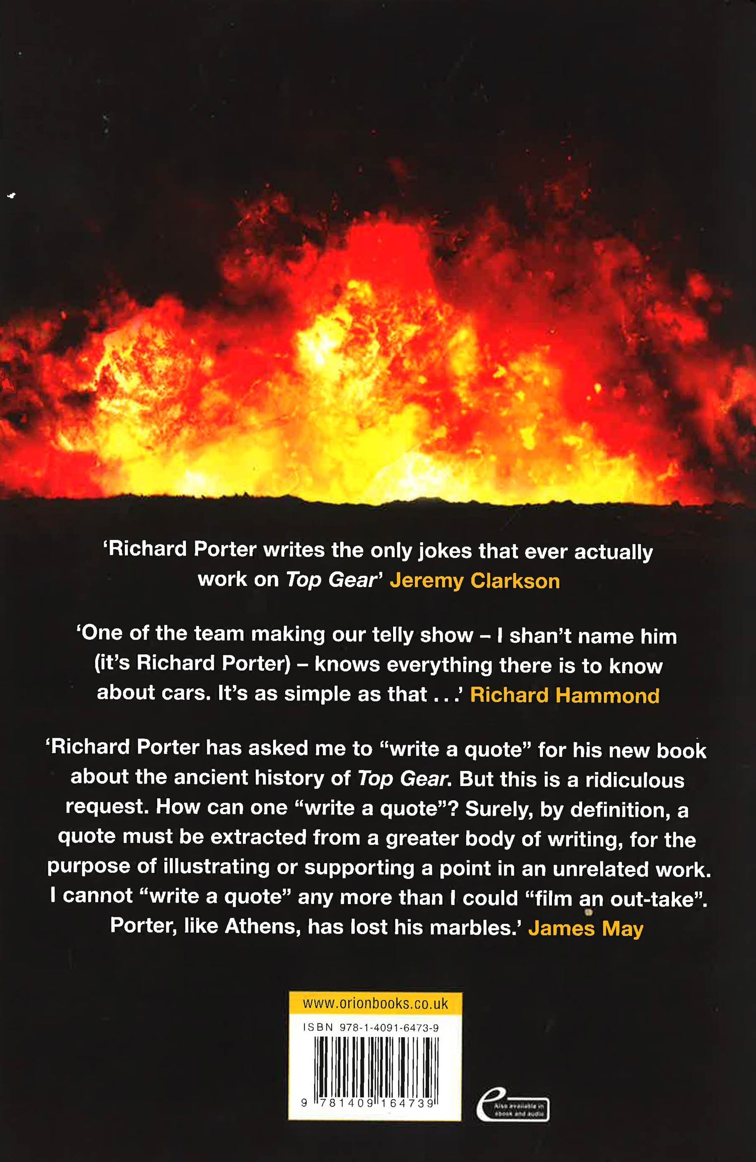 I was Top Gear's script editor for 13 years and all 22 series. I basically used to check spelling and think of stupid gags about The Stig. I also got to hang around with Jeremy Clarkson, Richard Hammond and James May. It didn't feel like something you should get paid for. From the disastrous pilot show of 2002 to the sudden and unexpected ending in 2015, working on Top Gear was quite a rollercoaster ride. We crossed continents, we made space ships, we bobbed across the world's busiest shipping lane in a pick-up truck. We also got chased by an angry mob, repeatedly sparked fury in newspapers, and almost killed one of our presenters. I realised that I had quite a few stories to tell from behind the scenes on the show. I remembered whose daft idea it was to get a dog. I recalled the willfully stupid way in which we decorated our horrible office. I had a sudden flashback to the time a Bolivian drug lord threatened to kill us. I decided I should write down some of these stories. So I have. I hope you like them. And now, a quote from James May: 'Richard Porter has asked me to "write a quote" for his new book about the ancient history of Top Gear. But this is a ridiculous request.