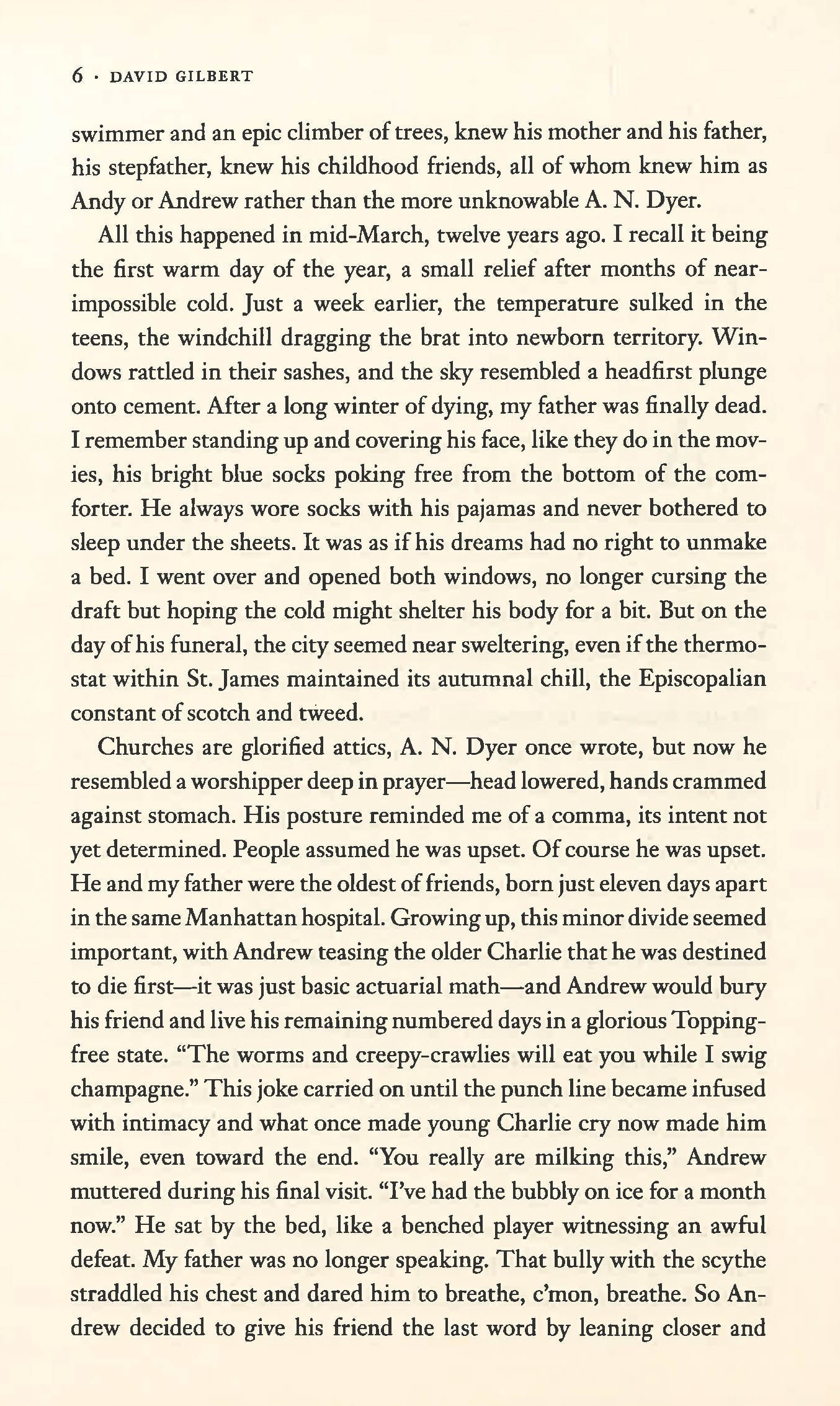 Who is A. N. Dyer? For fans of `The Art of Fielding' and `Wonder Boys' - this is the panoramic, deeply affecting story of an iconic novelist and the heartbreaking truths that fiction can hide. A.N. Dyer is America's most mysterious literary recluse, his cult book `Ampersand' treasured by angst-ridden adolescents everywhere. But seventeen years ago, the unexpected arrival of a new baby Dyer wrecked the writer's relationship with his wife and their own teenage sons. David Gilbert's astonishing novel is an ingenious, death-defying leap into the life of a giant of literature and a father with one final revelation for his boys - or is it actually just one last fiction? *This book may have remainder mark*