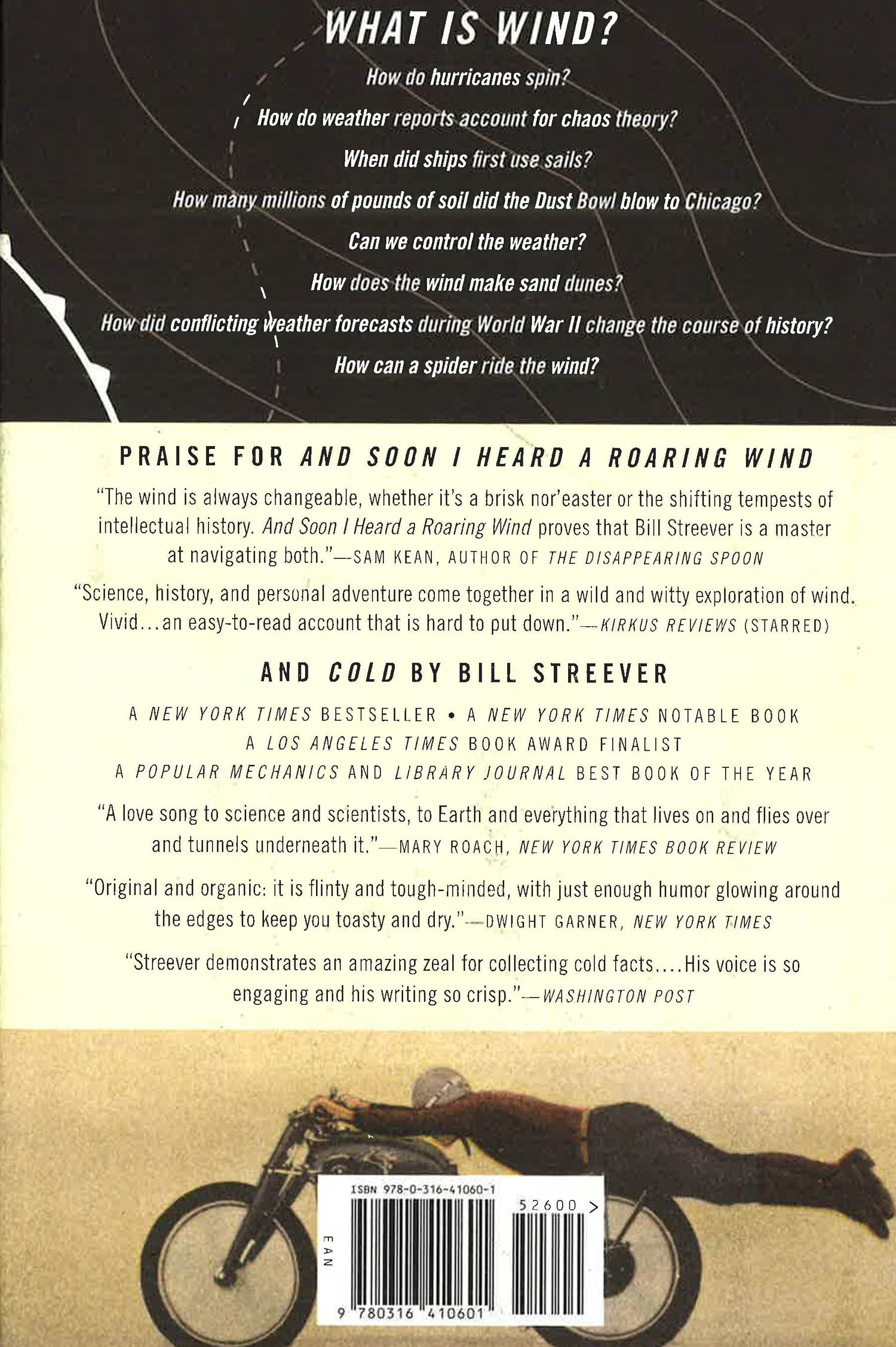 Scientist and bestselling nature writer Bill Streever goes to any extreme to explore wind--the winds that built empires, the storms that wreck them--by traveling right through it. Narrating from a fifty-year-old sailboat, Streever leads readers through the world's first forecasts, Chaos Theory, and a future affected by climate change. Along the way, he shares stories of wind-riding spiders, wind-sculpted landscapes, wind-generated power, wind-tossed airplanes, and the uncomfortable interactions between wind and wars, drawing from natural science, history, business, travel, as well as from his own travels.
