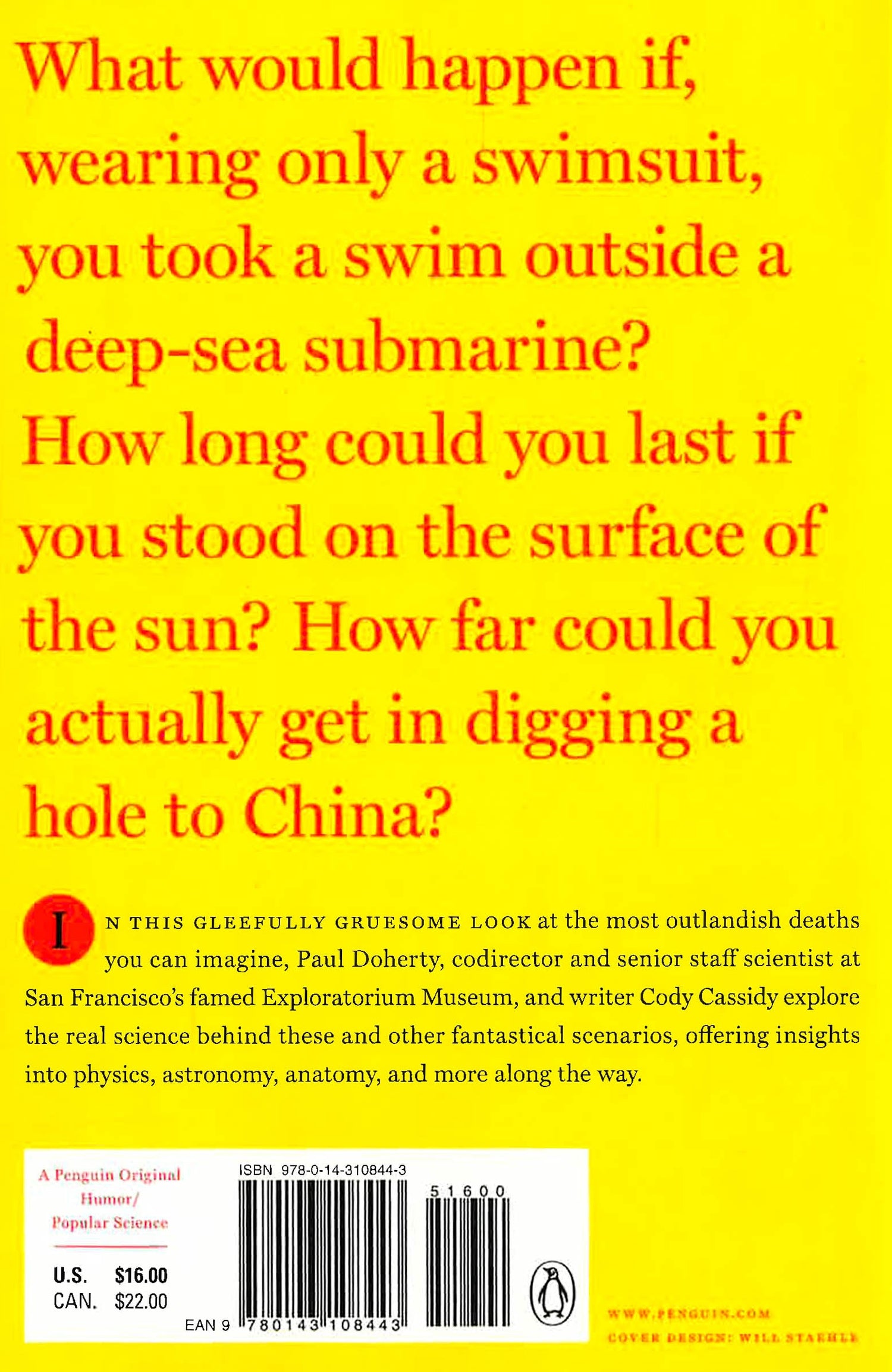 A gleefully gruesome look at the actual science behind the most outlandish, cartoonish, and impossible deaths you can imagine What would happen if you took a swim outside a deep-sea submarine wearing only a swimsuit? How long could you last if you stood on the surface of the sun? How far could you actually get in digging a hole to China? Paul Doherty, senior staff scientist at San Francisco's famed Exploratorium Museum, and writer Cody Cassidy explore the real science behind these and other fantastical scenarios, offering insights into physics, astronomy, anatomy, and more along the way. Is slipping on a banana peel as hazardous to your health as the cartoons imply? Answer: Yes. Banana peels ooze a gel that turns out to be extremely slippery. Your foot and body weight provide the pressure. The gel provides the humor (and resulting head trauma). Can you die by shaking someone's hand? Answer: Yes. That's because, due to atomic repulsion, you've never actually touched another person's hand. If you could, the results would be as disastrous as a medium-sized hydrogen bomb. If you were Cookie Monster, just how many cookies could you actually eat in one sitting? Answer: Most stomachs can hold up to sixty cookies, or around four liters. If you eat or drink more than that, you're approaching the point at which the cookies would break through the lesser curvature of your stomach, and then you'd better call an ambulance to Sesame Street.