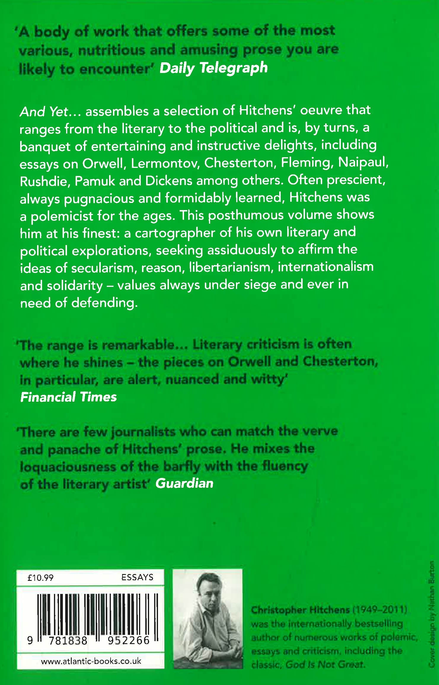 Christopher Hitchens was an unparalleled, prolific writer, who raised the polemical essay to a new art form, over a lifetime of thinking and debating the defining issues of our times. As an essayist he contributed to the New Statesman, Atlantic Monthly, London Review of Books, TLS and Vanity Fair. Any publication of a volume of Hitchens' essays was a major event on both sides of the Atlantic. Now comes a volume of Hitchens' previously uncollected essays, covering the themes that define Hitchens the thinker: literature, religion and politics. These essays remind us, once more, of the fierce, brilliant and trenchant voice of Christopher Hitchens.