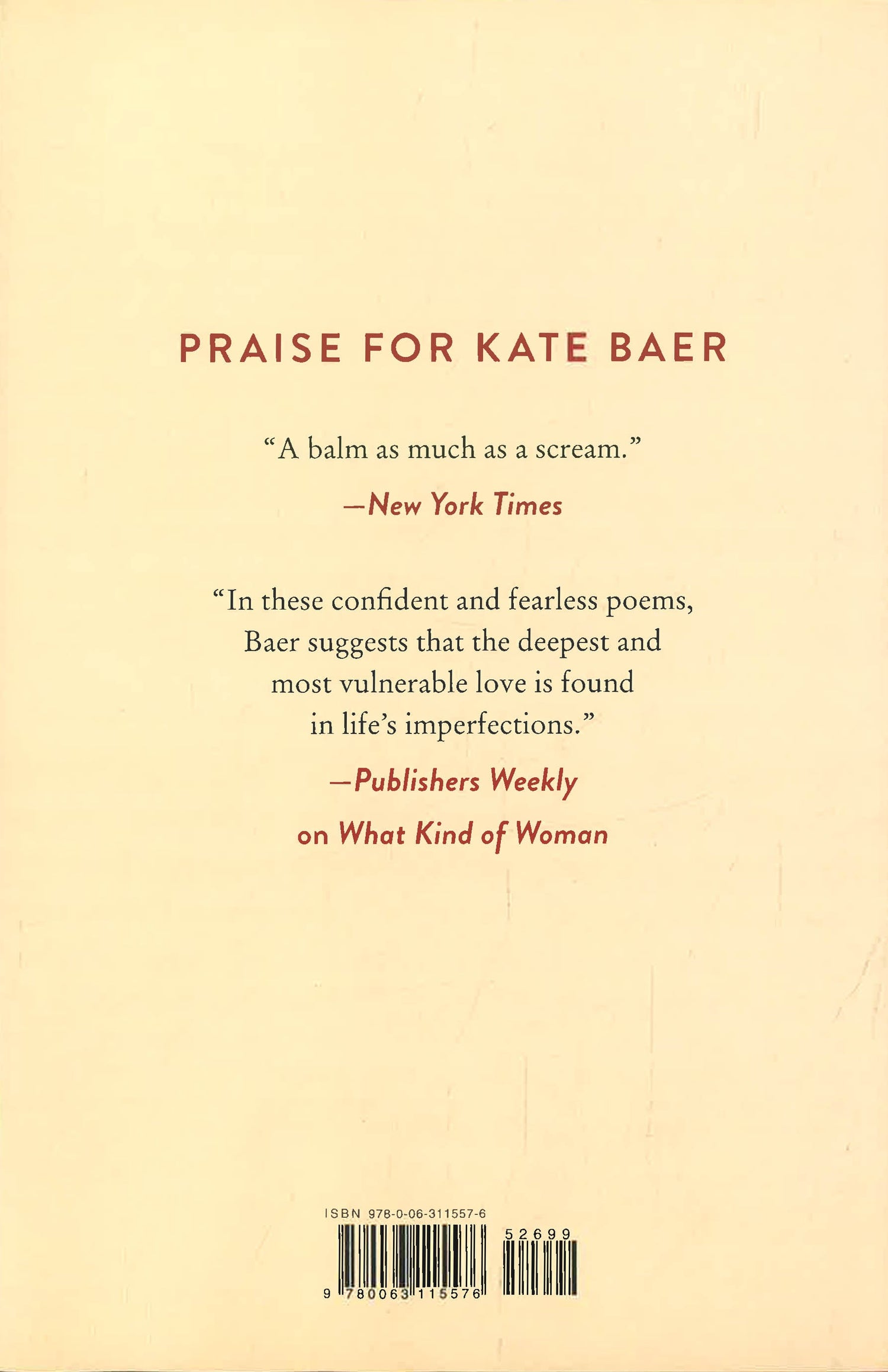 Kate Baer shot into the literary stratosphere with the publication of her debut poetry collection, What Kind of Woman, which became an instant #1 New York Times bestseller.