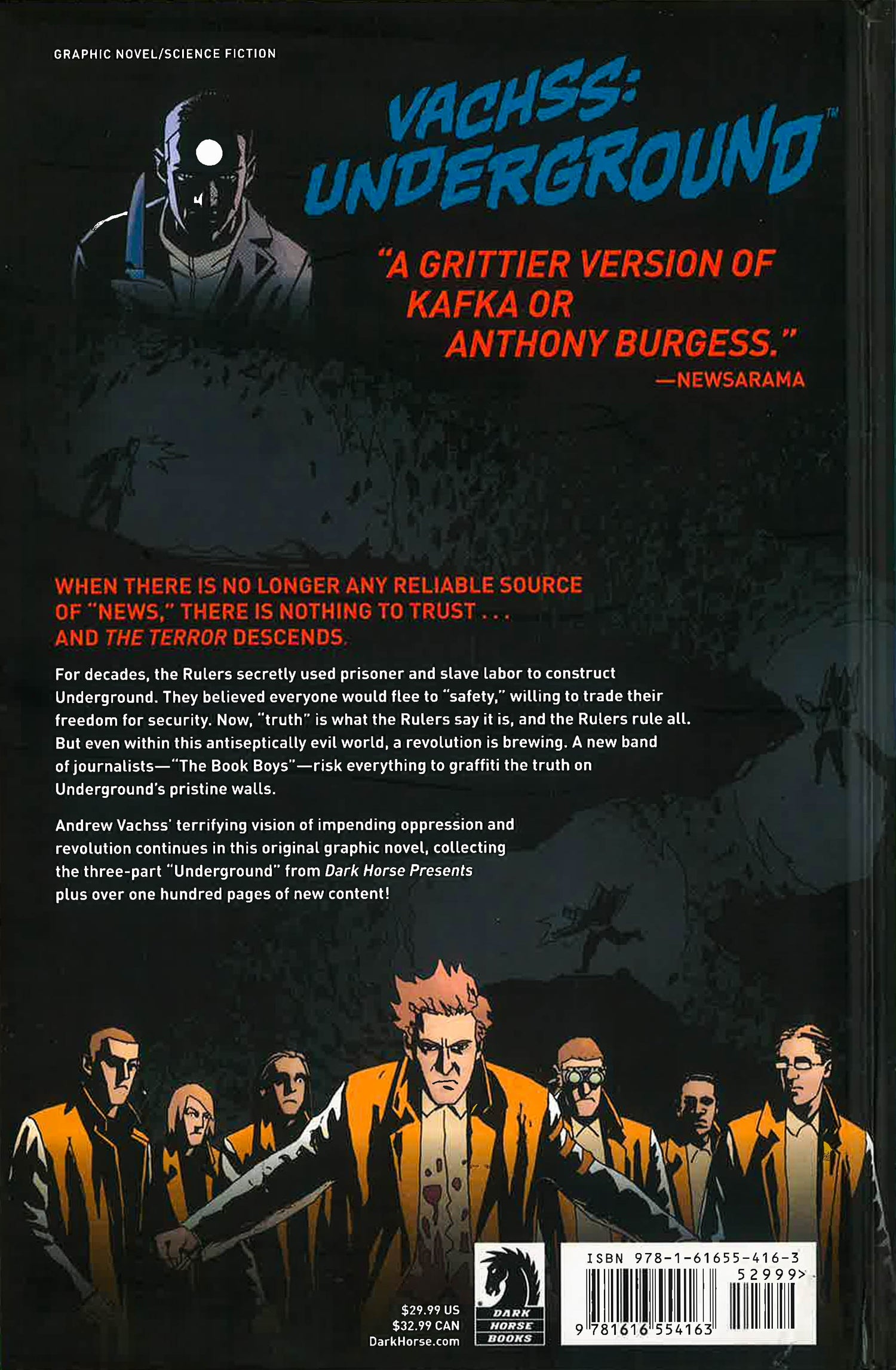 When there is no longer any reliable source of "news," there is nothing to trust . . . and "The Terror" descends. For decades, The Rulers have been at work, using prisoner/slave labor to construct Underground, believing that all those who flee there will trade their freedom for security. Now, "truth" is what the Rulers say it is, and The Rulers rule all. But even within this antiseptically evil world, a revolution is brewing. A new breed of journalists--known as "The Book Boys"--risk everything to graffiti the truth on Underground's pristine walls. *This book may have remainder mark*