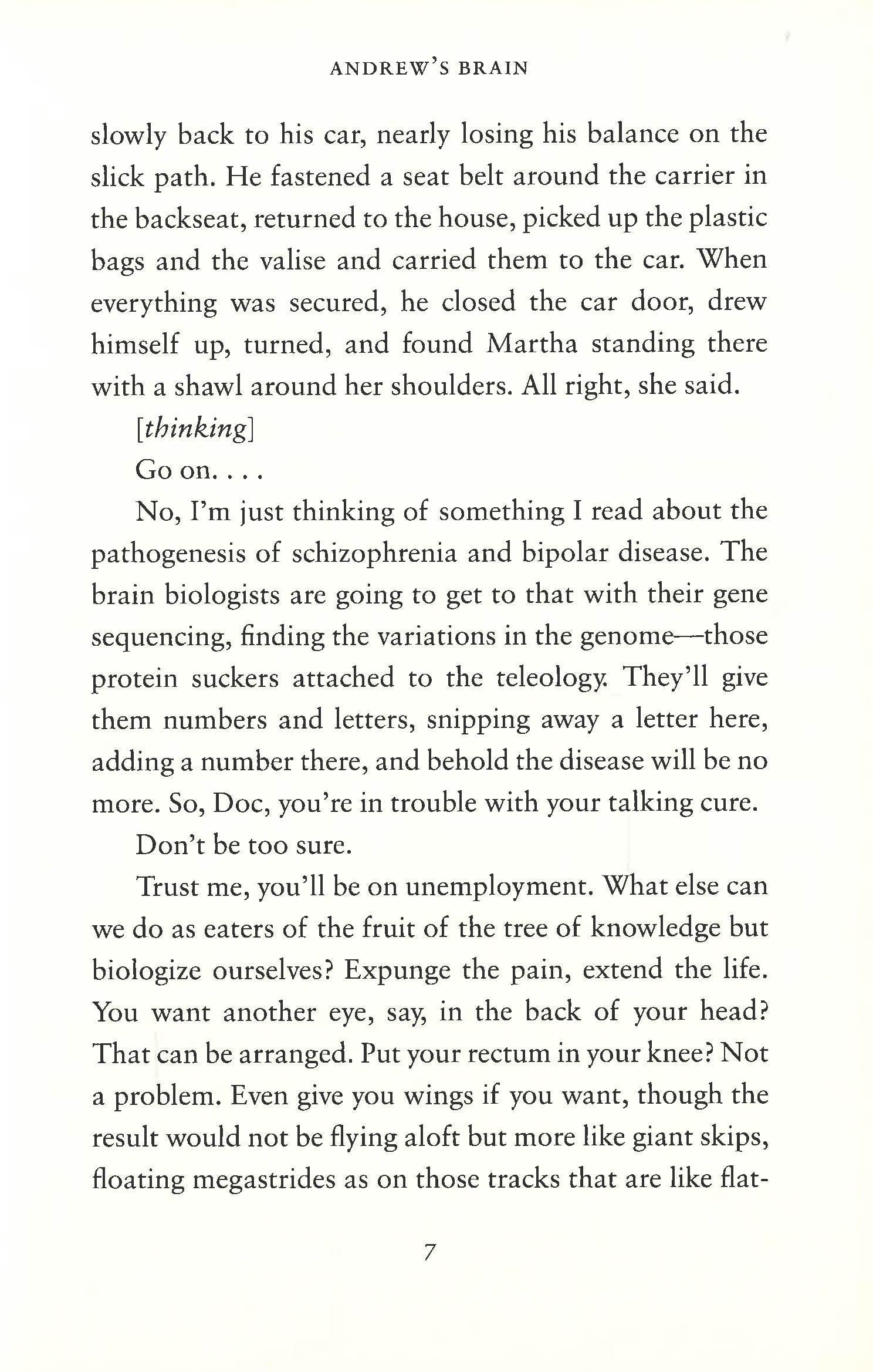 NAMED ONE OF THE BEST BOOKS OF THE YEAR BY ST. LOUIS POST-DISPATCH, SLATE, AND THE TELEGRAPH This brilliant novel by the author of Ragtime, The Book of Daniel, Billy Bathgate, and The March takes us on a radical trip into the mind of a man who, more than once, has been the inadvertent agent of disaster. Speaking from an unknown place and to an unknown interlocutor, Andrew is thinking, Andrew is talking, Andrew is telling the story of his life, his loves, and the tragedies that have led him to this place and point in time. As he peels back the layers of his strange story, we are led to question what we know about truth and memory, brain and mind, personality and fate, about one another and ourselves. Probing, mischievous, and profound, Andrew?s Brain is a singular achievement in the canon of an American master. *This book may have remainder mark*
