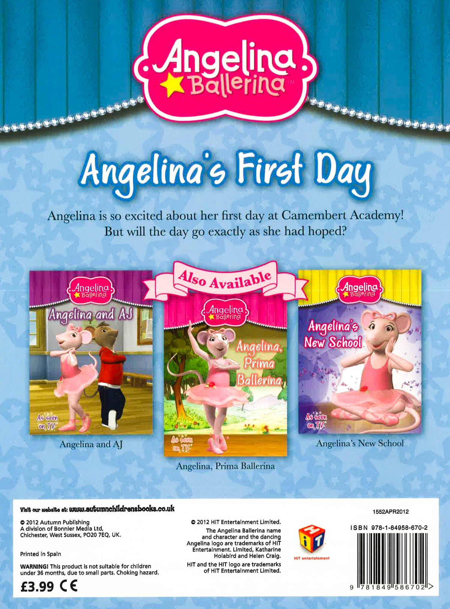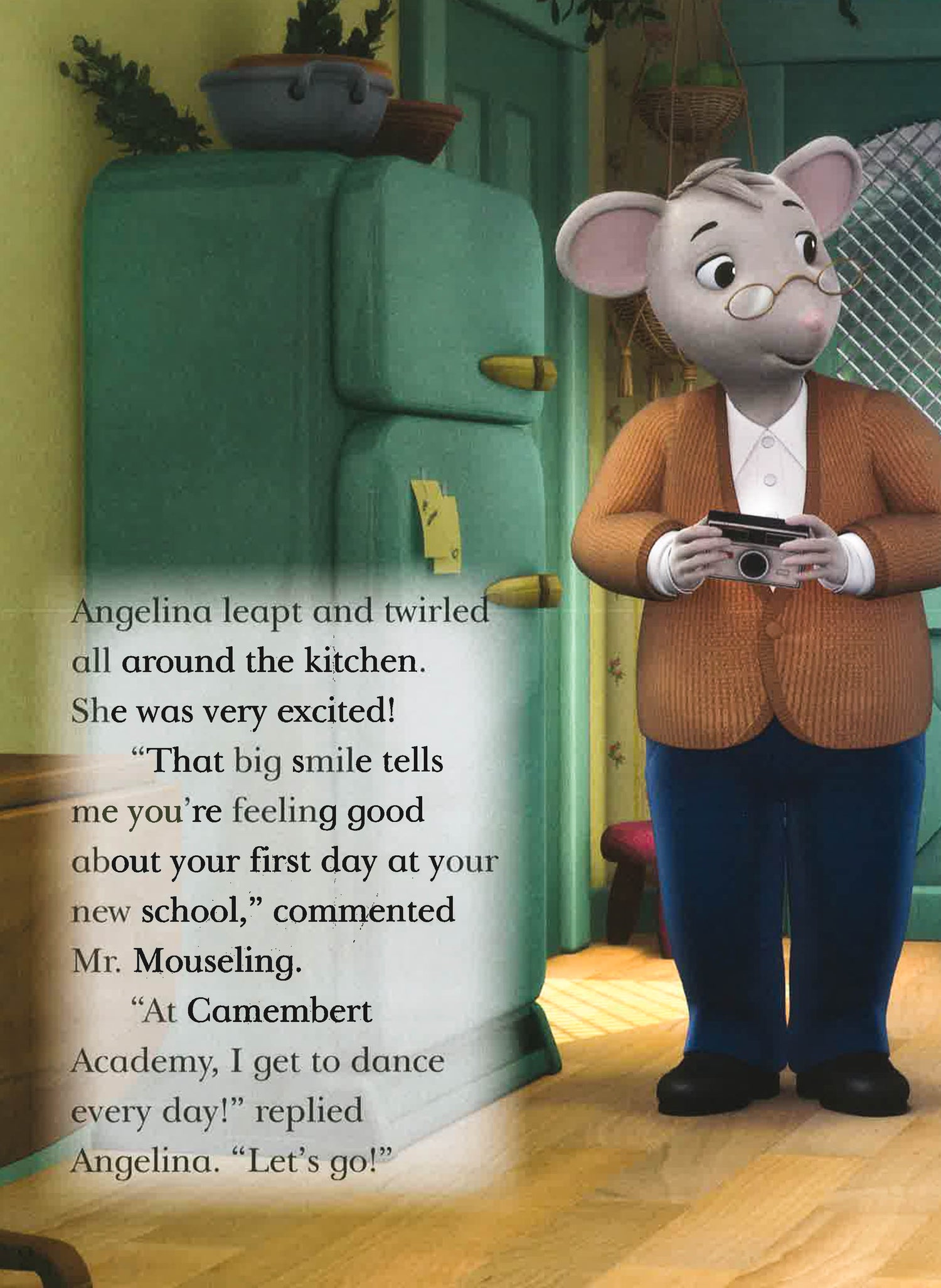 Angelina Ballerina storybook: Angelina is so excited about her first day at Camembert Academy! But will the day go exactly as she had hoped?
