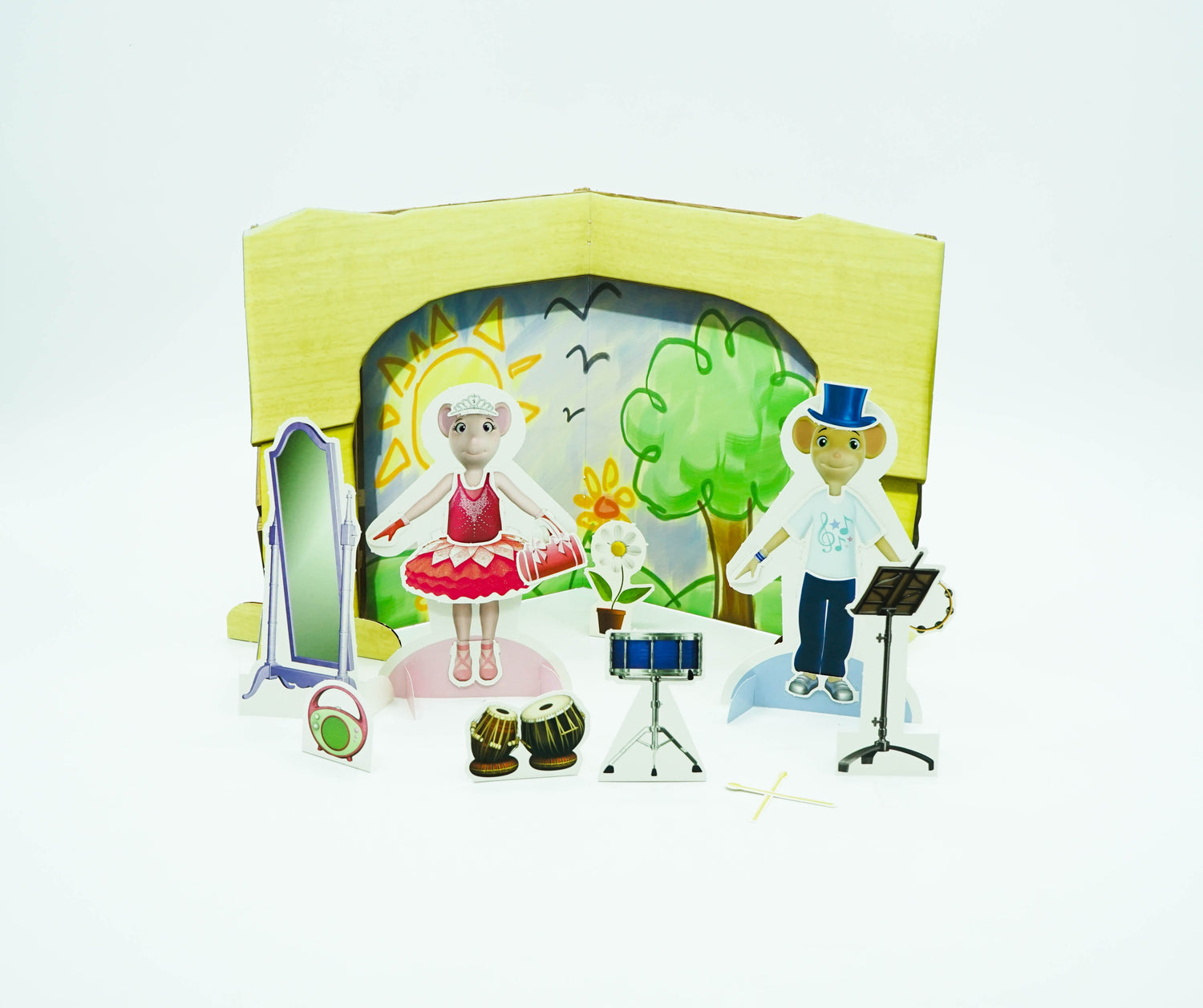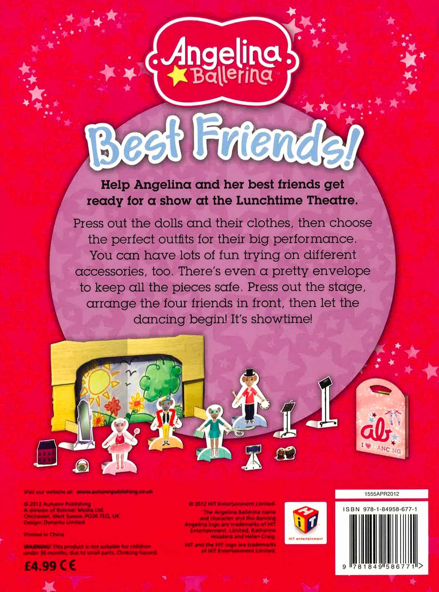 Help Angelina and her best friends get ready for a show at the Lunchtime Theatre. Press out the dolls and their clothes, then choose the perfect outfits for their big performance. You can have lots of fun trying on different accessories, too. There's even a pretty envelope to keep all the pieces safe. Press out the stage, arrange the four friends in front, then let the dancing begin! It's showtime!