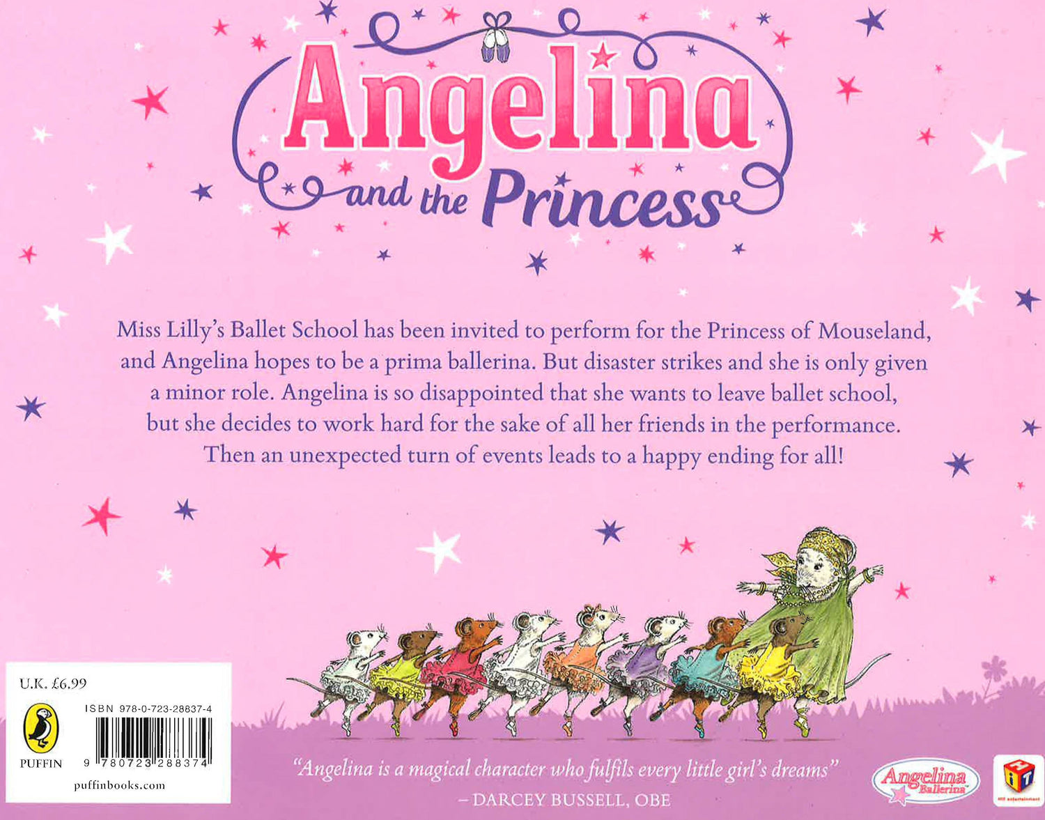 Miss Lilly's Ballet School has been invited to perform for the Princess of Mouseland, and Angelina hopes to be a prima ballerina. But disaster strikes when she is only given a minor role. Angelina is so disappointed that she wants to leave ballet school, but she decides to work hard for the sake of all her friends in the performance. There is an unexpected turn of events, however, when the prima ballerina sprains her ankle and Angelina is delighted to be able to step in and save the day!