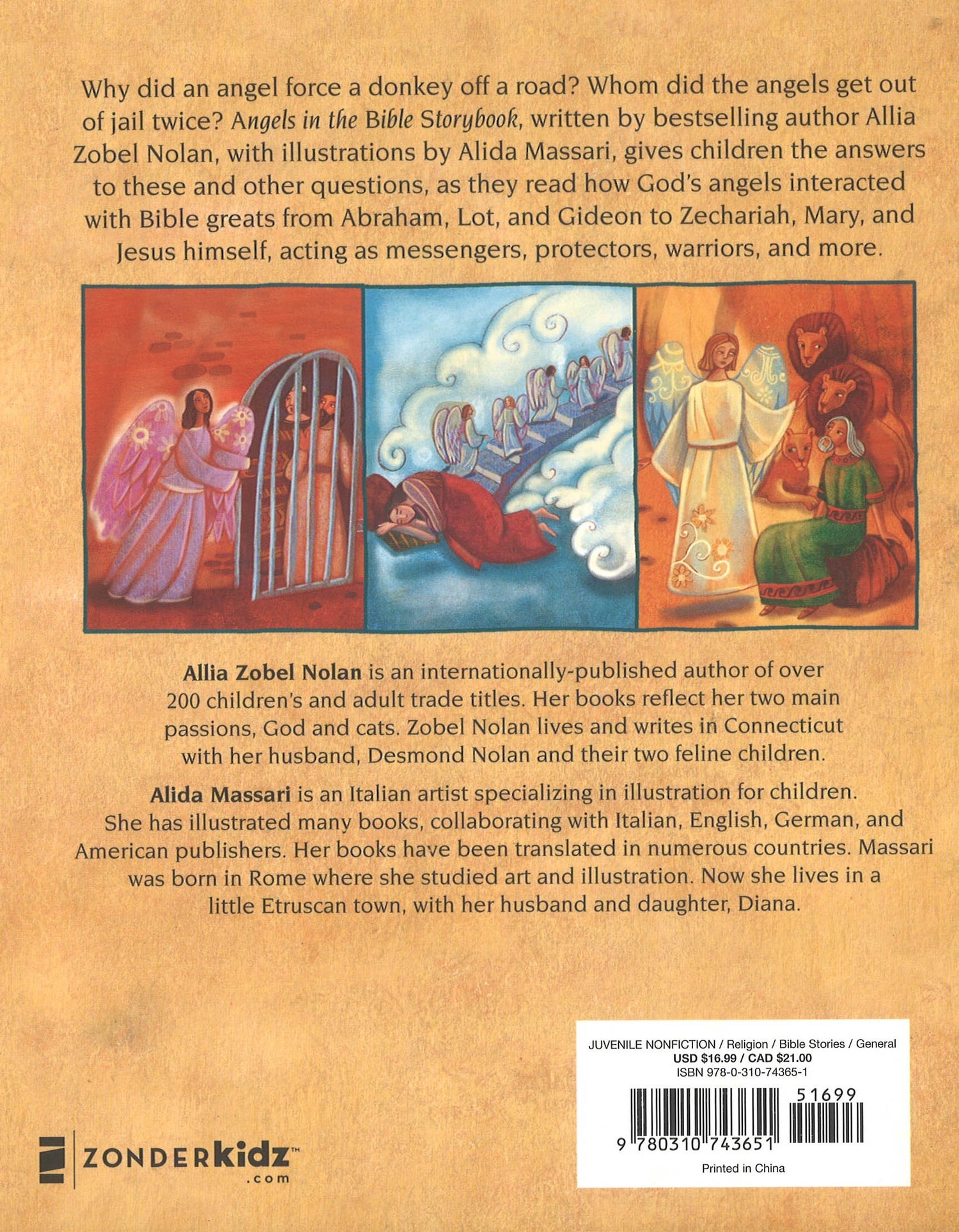 Where were the angels when God created the world? Why did an angel force a donkey off a road? Who did the angels get out of jail twice? Young readers will find answers to these and other questions in this exciting storybook, written by bestselling author Allia Zobel Nolan with illustrations by Alida Massari. Angels in the Bible Storybook gives children a fascinating look into how God’s powerful behind-the-scenes helpers interacted with Bible greats from Abraham, Lot, and Gideon to Zechariah, Mary, and Jesus himself, acting as messengers, protectors, warriors, and more.