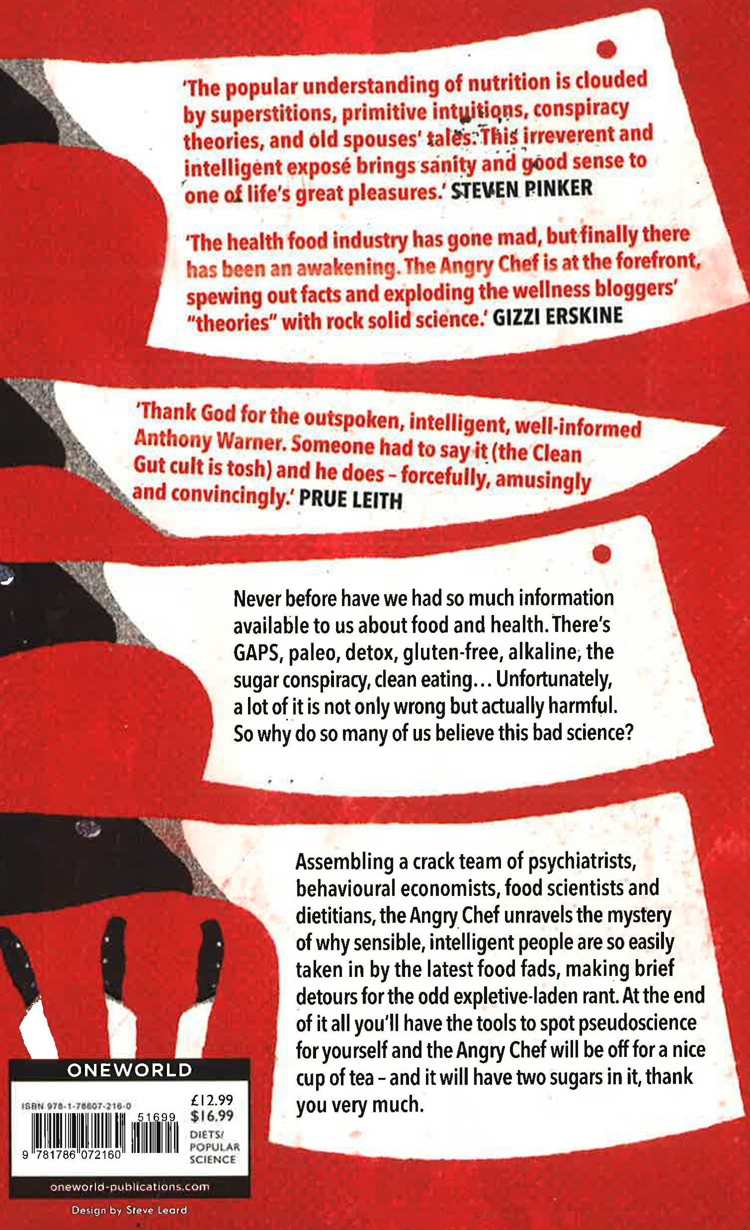 Assembling a crack team of psychiatrists, behavioural economists, food scientists and dietitians, the Angry Chef unravels the mystery of why sensible, intelligent people are so easily taken in by the latest food fads, making brief detours for an expletive-laden rant. At the end of it all you'll have the tools to spot pseudoscience for yourself and the Angry Chef will be off for a nice cup of tea - and it will have two sugars in it, thank you very much.