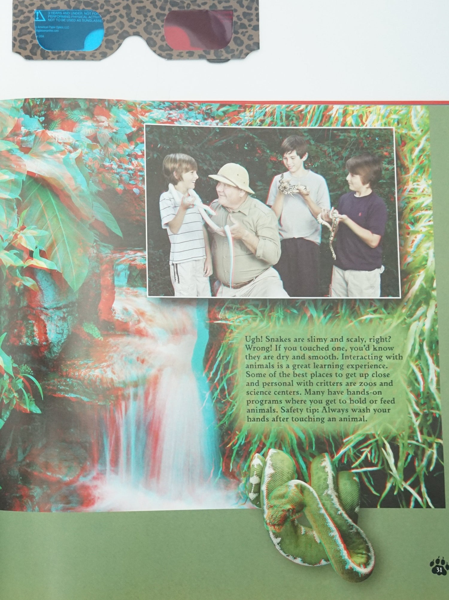 Grab your 3D glasses and get ready for a wild adventure around the world. Featuring 100 large-scale, action photos of wild animals in their natural habitats, Animals Adventures 3D is a one-of-a-kind reading experience. TIME for Kids and master 3D photographer David Klutho present incredible photos, taken only with a 3D camera, along with fascinating facts about Komodo dragons, polar bears, camels, anteaters and more amazing animals. Accompanied by two sets of 3D glasses, this dynamic visual collection of some of the planet's diverse animal life will entertain and educate any animal fan. Look for other books in the TIME For Kids 3D series: Dinosaurs 3D and Zoo 3D.