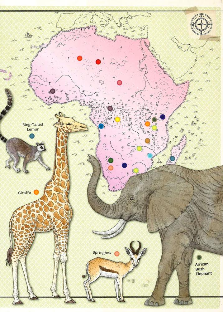 Did you know that: Sea otters can spend months in the water without returning to land? Flying fish can glide for 300 ft over the water? A Praying Mantis can rotate its head 180 degrees? Become an expert on all things that swim, fly, walk, hop, slither, and crawl! In a celebration of the many animals that share our planet, this gorgeously illustrated atlas explores over 250 different animals across the seven continents. Learn where different animals live, what they eat, how they communicate, and many more fascinating facts!